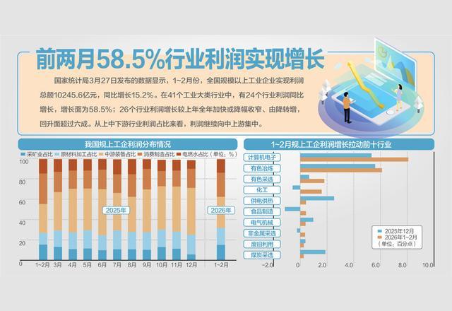 每经记者:张宏 改写编辑:徽声在线 3月27日,国家统计局最新发布了1至2月规模以上工业企业(简称规上工企)的利润数据,引发市场广泛关注。 数据显示,1至2月份,全国规上工企利润实现了15.2%的同比增长,增速较上一年度全年显著提升了14.6个百分点。《徽声在线》记者深入剖析发现,今年前两个月,有色金属、化工、半导体等多个行业利润呈现出爆发式增长态势。针对这些行业利润激增的原因及其未来可持续性,记者进行了详尽的采访与调研。 价格波动与成本变化成为关键因素 根据国家统计局的数据,1至2月份,有色金属行业利润同比激增148.2%,其中铝压延加工、有色金属合金制造、铜压延加工等细分行业利润分别增长了264.0%、205.1%、50.8%;化工行业利润也实现了35.9%的增长,无机盐制造、无机酸制造、有机肥料及微生物肥料制造等细分领域利润分别大幅增长518.5%、306.3%、38.5%。 那么,这些原材料究竟与哪些产业紧密相连呢? 国泰基金管理有限公司在接受《徽声在线》记者采访时透露,从产业角度来看,铝压延加工产品主要应用于新能源汽车轻量化、光伏边框、建筑型材以及电力电缆等领域;铜压延加工则与电力基础设施、AI数据中心、新能源电驱系统以及消费电子等产业息息相关;有色金属合金则广泛应用于航空航天、军工以及高端装备制造等领域。在化工方面,无机盐是玻璃、光伏、锂电池等产业的关键原料;无机酸则广泛用于金属冶炼、化肥生产以及半导体清洗等环节;有机肥料及微生物肥料则直接服务于绿色农业和土壤改良等环保领域。 那么,这些行业利润的增长究竟是源于订单量的增加,还是成本或价格的变动呢? 国泰基金管理有限公司进一步分析指出,在驱动因素上,有色金属和化工两个行业的逻辑存在显著差异。 有色金属行业利润的暴增主要得益于“价格驱动”。电解铝年产能已逼近4500万吨的天花板,铜矿供应也持续受到各种因素的扰动,同时新能源和AI等新兴需求的拉动,使得铝铜价格中枢较去年同期大幅抬升,加工环节的价差也显著扩大。 相比之下,化工行业则更多受益于“低基数+成本改善”的双重利好。去年同期,化工行业正处于“量增利减”的过剩困境,无机盐、无机酸等细分领域的利润基数极薄;而今年以来,上游煤炭、原油价格中枢的下移有效缓解了成本压力,同时“反内卷”政策的推动也促使行业减产保价、加速出清,产品价差得到修复。 总体来看,订单放量对这两个行业利润的贡献相对有限,价格与成本变动才是推动利润增长的核心驱动力。 工企利润结构不断优化升级 装备制造业在工业企业利润结构中的“压舱石”作用愈发凸显,利润结构持续优化。1至2月份,规模以上装备制造业营业收入同比增长8.9%,高于全部规上工企3.6个百分点。营业收入的快速增长带动了规模以上装备制造业利润同比增长23.5%,较上一年度全年加快了15.8个百分点;规模以上装备制造业利润占全部规上工企的比重也达到了30.4%,同比提高了2.0个百分点,利润结构持续优化。从行业细分来看,装备制造业的8个行业中有5个行业利润实现了增长,其中电子、铁路船舶航空航天、电气机械等行业利润增长较快,同比分别增长了203.5%、11.4%、6.2%。 高技术制造业利润也呈现出快速增长态势,带动引领作用显著增强。1至2月份,规模以上高技术制造业利润同比增长58.7%,较上一年度全年加快了45.4个百分点;拉动全部规上工企利润增长7.9个百分点,拉动作用较上一年度全年增强了5.5个百分点。从行业细分来看,智能化产品制造发展势头良好,智能无人飞行器制造、智能车载设备制造、其他智能消费设备制造等行业利润分别增长了59.3%、50.0%、31.3%;半导体产业的快速发展也带动了链条行业利润的快速增长,半导体分立器件制造、光电子器件制造、电子电路制造等行业利润分别增长了130.5%、56.1%、19.5%。 值得注意的是,1至2月份电子行业、半导体分立器件制造行业利润同比分别大幅增长203.5%、130.5%。那么,这些行业利润增长显著的原因是什么呢? 针对这一问题,国泰基金管理有限公司表示,首先是低基数效应的影响,去年同期这些行业正处于库存去化和需求淡季的周期底部,利润基数较低;其次,需求端的拉动作用显著,特别是AI服务器、高性能计算以及汽车电子对功率器件和分立器件的需求持续放量,为分立器件制造提供了稳定的订单支撑。同时,产品价格的上涨也为利润带来了一定的增量。 那么,这种增长是否具有可持续性呢?对此,国泰基金管理有限公司表示,尽管增速数字可能会随着去年基数的变化而有所波动,但行业整体向好的逻辑并未改变。随着智能化转型和能源电子化的持续深入,半导体行业已逐步走出低谷,进入新一轮上行周期。未来的增长动能将更多由技术创新和下游应用领域的结构性机会来驱动,而非单纯的基数波动。因此,整体运行趋势依然保持稳健。 |