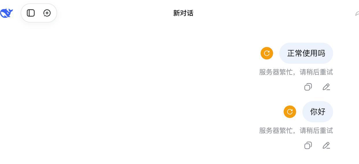 3月29日当天,不少网友在社交媒体平台上纷纷发帖称,人工智能服务DeepSeek出现了服务异常情况。当用户尝试开启新的对话时,系统页面弹出提示信息,显示“服务器繁忙,请您稍后再进行重试”。 |