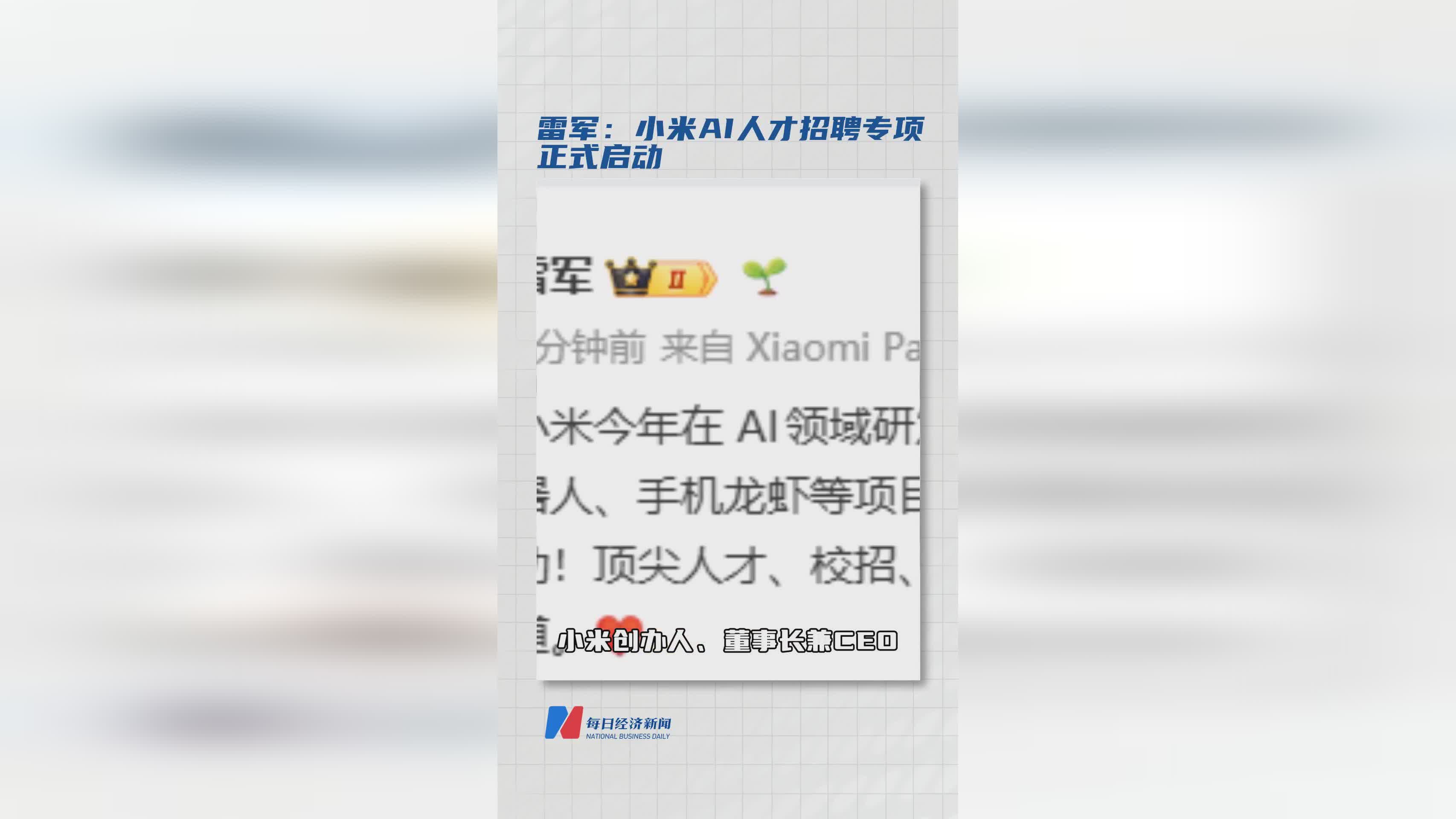 ![]() 近日,徽声在线从可靠渠道获悉,小米公司创始人雷军正式宣布,小米AI人才专项招聘计划已经全面启动。这一举措标志着小米在人工智能领域的布局再次迈出重要一步,旨在吸引更多顶尖人才加入,共同推动AI技术的创新与发展。随着人工智能技术的不断进步,小米正积极寻求在AI领域的突破,通过此次专项招聘,小米希望能够汇聚一批具有创新思维和实践经验的AI专家,为公司的未来发展注入新的活力。 |