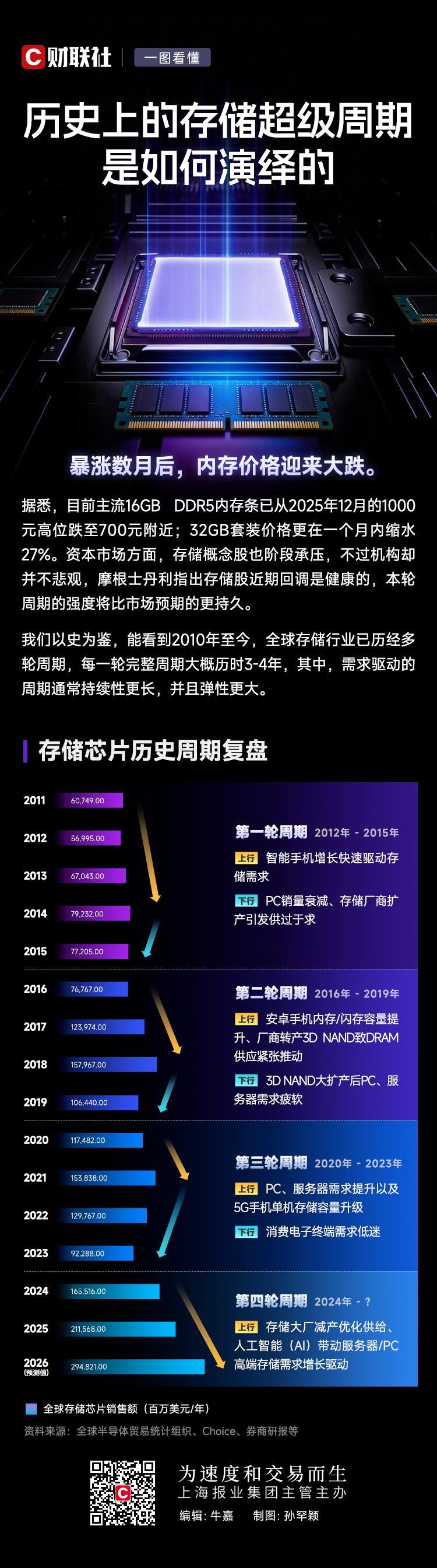 深度解析:历史存储超级周期的演变轨迹全览在科技发展的长河中,存储行业始终扮演着至关重要的角色。从早期的磁带存储到如今的固态硬盘,每一次技术革新都推动着存储超级周期的演变。那么,历史上的存储超级周期究竟是如何一步步演绎的呢?本文将通过一张图解,带您深入剖析这一过程。 一、存储技术的萌芽与初步发展在计算机技术的初期,存储设备主要以磁带和打孔卡片为主。这些设备虽然容量有限、速度较慢,但为数据的长期保存提供了可能。随着技术的不断进步,硬盘驱动器(HDD)逐渐崭露头角,成为主流的存储设备。其容量的不断提升和成本的逐渐降低,为存储超级周期的开启奠定了基础。 二、存储超级周期的兴起与繁荣进入21世纪,随着互联网的普及和大数据时代的到来,存储需求呈现出爆炸式增长。这一时期,存储技术迎来了前所未有的发展机遇。从传统的HDD到更高速的固态硬盘(SSD),再到云存储和分布式存储技术的兴起,存储行业经历了多次技术革新和产业升级。这些变革不仅极大地提升了存储容量和速度,还降低了存储成本,推动了存储超级周期的繁荣。 三、存储超级周期的挑战与转型然而,随着技术的不断进步和市场的日益饱和,存储行业也面临着诸多挑战。一方面,传统存储技术的性能提升逐渐触及瓶颈;另一方面,新兴技术如人工智能、物联网等的快速发展对存储提出了更高的要求。在这一背景下,存储行业开始寻求转型和升级。从硬件层面的创新到软件层面的优化,从单一存储到融合存储,存储行业正在不断探索新的发展方向。 四、未来展望:存储超级周期的新篇章展望未来,存储行业将继续保持快速发展的态势。随着量子计算、光存储等前沿技术的不断突破,存储容量和速度有望实现质的飞跃。同时,随着数据安全和隐私保护意识的不断提升,存储行业也将更加注重数据的安全性和可靠性。可以预见,未来的存储超级周期将开启新的篇章,为人类社会的发展贡献更多力量。 |