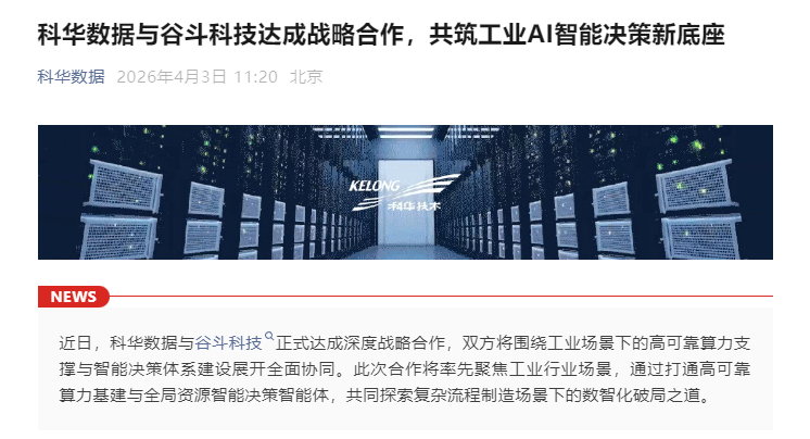 每经AI快讯,4月3日最新消息,科华数据对外宣布,在近期与谷斗科技成功签署了深度战略合作协议。此次合作,双方将聚焦于工业场景领域,共同致力于打造高可靠的算力支撑体系以及智能决策体系,展开全方位、深层次的协同合作。 在合作规划中,双方计划构建一个算力底座与AI算法深度适配的完整生态体系。通过这一体系,能够充分保障谷斗科技所研发的AI决策智能体,在科华数据提供的高可靠算力基础设施环境中,发挥出最大的效能,实现性能的优化与提升。 不仅如此,面对复杂制造场景下软硬件协同这一具有挑战性的难题,科华数据与谷斗科技将携手并肩,共同投入研发力量进行攻关。旨在加速工业智能决策技术在真实生产产线中的规模化应用,确保其能够稳定、高效地落地,为工业生产带来更智能、更高效的变革。 |