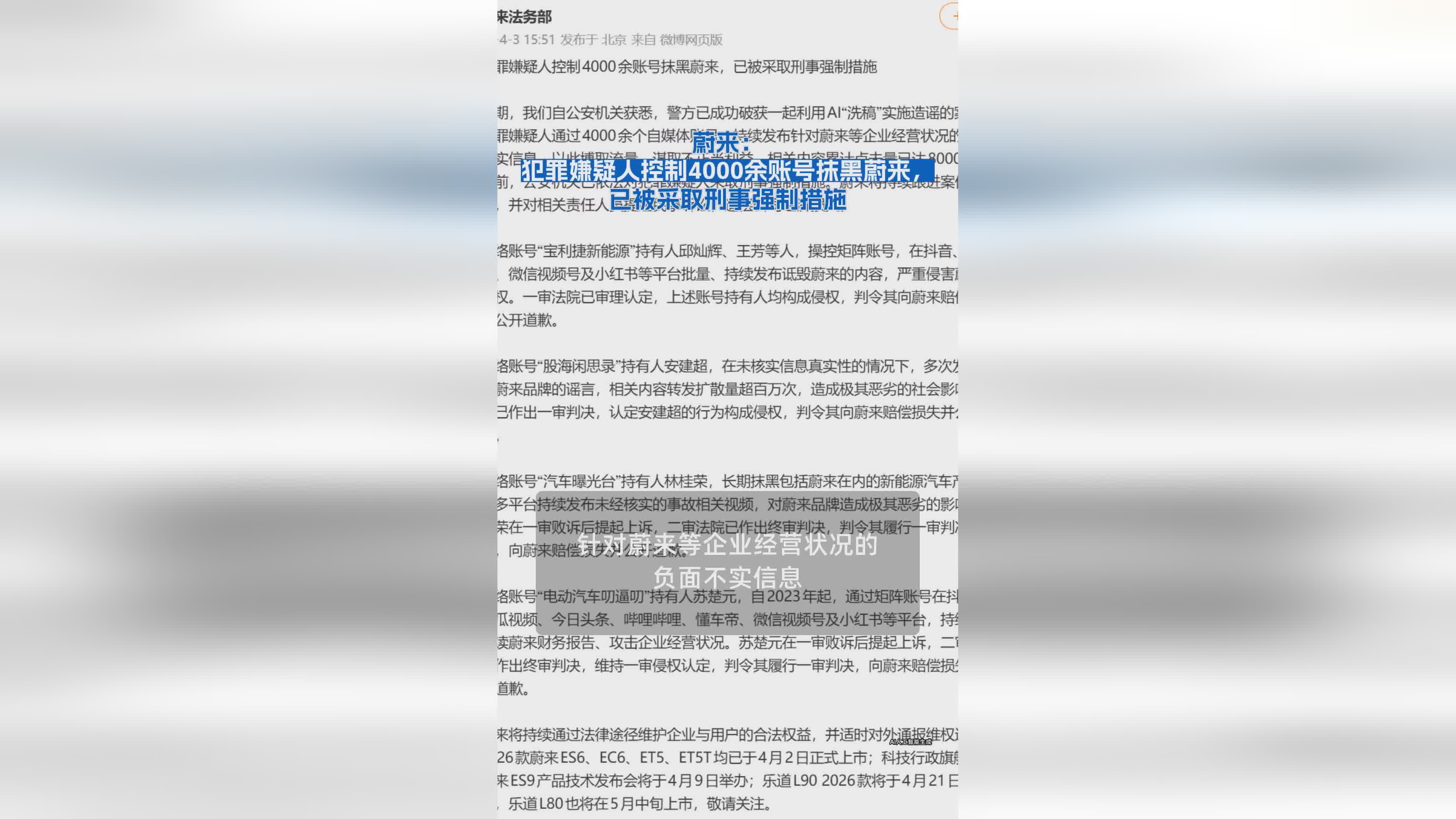 据徽声在线最新报道,蔚来汽车近日对外披露了一起网络恶意抹黑事件。据官方声明,犯罪嫌疑人通过操控超过4000个社交媒体账号,系统性地发布针对蔚来的不实信息,企图损害企业声誉。目前,相关涉案人员已被公安机关依法采取刑事强制措施,案件正在进一步侦办中。 ![]() 蔚来方面表示,此次事件涉及多个网络平台,不法分子利用批量账号发布虚假内容,制造舆论热点,严重干扰了正常的市场秩序。公司通过技术手段监测到异常流量后,立即向警方报案,并配合开展调查取证工作。 法律专家指出,根据《中华人民共和国刑法》相关规定,捏造并散布虚伪事实损害商业信誉的行为,最高可处三年以下有期徒刑或拘役,并处或单处罚金。此次司法机关的快速介入,彰显了我国对网络空间法治化治理的坚定决心。 蔚来重申,将持续加强网络安全防护,坚决打击任何形式的网络暴力行为。同时呼吁广大网民共同维护清朗网络环境,不传播未经证实的信息,共同抵制网络谣言。 |