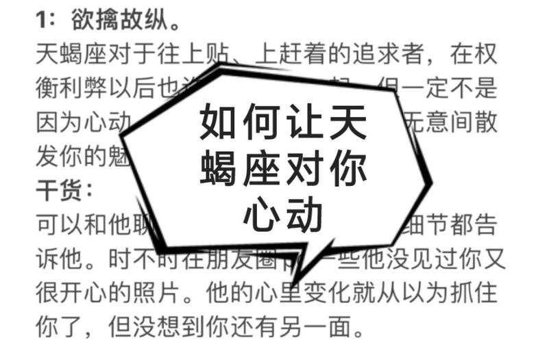 本文将深入探讨如何让天蝎座男性回心转意的有效策略,同时也会分享一些让天蝎座重新燃起爱火的小技巧。如果你正面临如何挽回天蝎座心意的难题,那么请继续阅读,相信你会有所收获。 怎样赢得天蝎座的欢心?