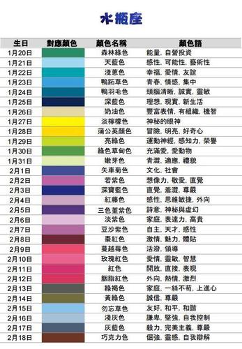 水瓶座的守护星是天王星,这颗象征着智慧与变数的星球,赋予了水瓶座非凡的创造力与洞察力。而他们的守护神,则是希腊神话中的乌拉诺斯与罗马神话中的同名神祇,都代表着天空与宇宙的广阔无垠。 在幸运元素方面,水瓶座同样拥有着独特的偏好。他们的幸运石是红色石榴石,这种充满热情与活力的宝石,仿佛能点燃水瓶座内心的火焰,激发他们无限的潜能。而幸运数字4和8,则如同他们的守护神一样,默默地守护着他们,为他们带来好运与机遇。每周的礼拜三,是水瓶座的幸运日,这一天,他们仿佛被幸运之神眷顾,无论做什么事情都能得心应手、顺顺利利。 至于幸运地点,水瓶座则偏爱繁忙的地方和大都市。这些充满活力与机遇的地方,正是他们展现自我、实现梦想的舞台。而他们的幸运色,则是青色度的蓝绿。这种颜色既融合了蓝色的深邃与宁静,又蕴含了绿色的生机与活力,仿佛是大自然与宇宙的完美结合,为水瓶座带来了无尽的灵感与力量。 水瓶座幸运色揭秘:青色度的蓝绿有何深意?