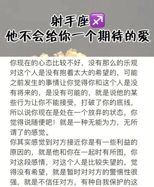 本文将深入探讨射手座不喜欢一个人时的具体表现,同时也会为大家解析射手座在试探喜欢的人时会有哪些预兆。希望通过这些分析,能帮助大家更好地理解射手座的情感世界。如果你正面临与射手座相处的困惑,不妨继续阅读,或许能找到答案。