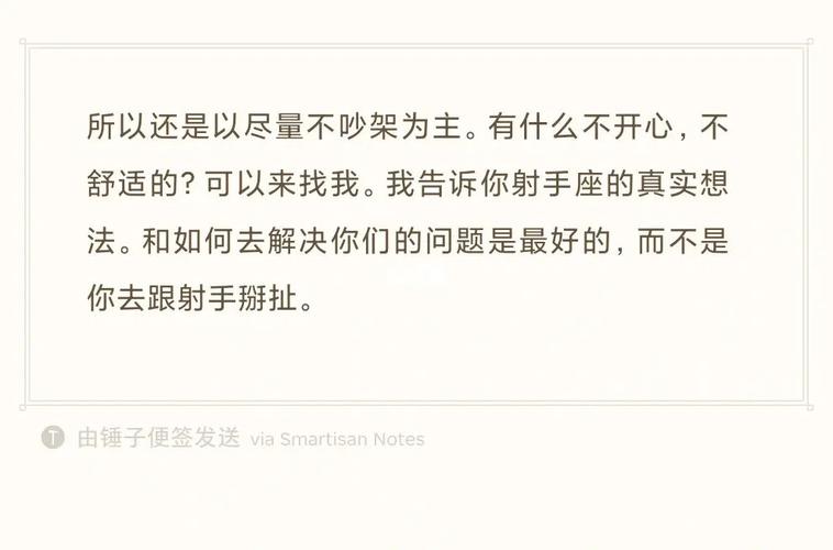 以上便是关于与射手座吵架后如何应对,以及是否应主动与射手座和解的相关内容分享。希望这些建议能对你有所帮助,让你在与射手座男友相处时更加和谐美满! |