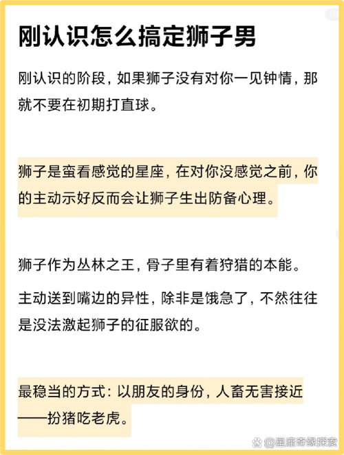 双鱼座在星座配对中,与金牛座、巨蟹座、天蝎座以及摩羯座有着较高的契合度。而今天,我们要聚焦的是如何搞定狮子座男生,掌握吸引狮子男的绝招。 如何牢牢抓住狮子座男友的心