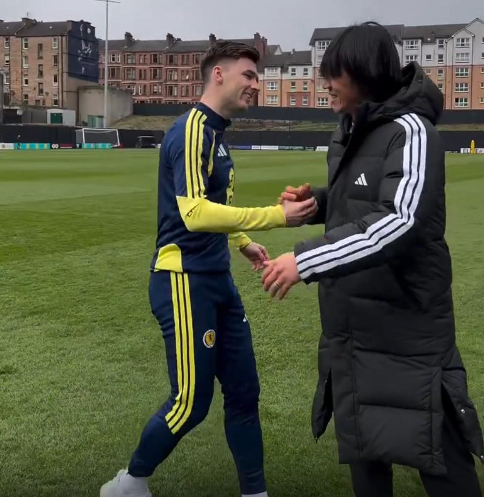 在国际比赛日的热潮中,日本国家队于3月28日与苏格兰展开了一场备受瞩目的友谊赛。而在3月27日,日本足球界的传奇人物中村俊辅,以本场赛事的解说嘉宾身份,踏上了苏格兰的土地。 在格拉斯哥这座充满足球氛围的城市,中村俊辅意外地与一位将他视为偶像的苏格兰球员实现了久别重逢。这位球员,正是目前效力于苏格兰顶级豪门凯尔特人的边后卫蒂尔尼。苏格兰国家队官方社交媒体也及时分享了两人温馨互动的视频片段,引发了球迷们的热烈讨论。 现年28岁的蒂尔尼,自年少时便展现出非凡的足球天赋,18岁便完成了在苏格兰国家队的处子秀。作为一名技术出众的边后卫,他同样以左脚见长,这一点与中村俊辅不谋而合。 回溯往昔,中村俊辅在凯尔特人效力期间,曾是球队的中流砥柱,深受球迷喜爱。多年以前,当蒂尔尼年仅10岁,刚刚加入凯尔特人青训营时,他有幸从中村俊辅手中接过了一双梦寐以求的球鞋。这双球鞋,对蒂尔尼而言,不仅是一份珍贵的礼物,更是他足球梦想启航的见证,至今仍被他悉心珍藏。 在《U-NEXT》的一档访谈节目中,蒂尔尼满怀深情地回忆道:“那双球鞋,我至今还摆在家里显眼的位置,它时刻提醒着我足球的初心和梦想。”中村俊辅听后,笑着回应:“真没想到你还留着它,真是太有意义了。” 中村俊辅还深情地表示:“那时候,我挑选球鞋的赠送对象,并不是看谁踢得最好,而是看谁对足球最投入、最热爱。蒂尔尼就是这样一个孩子,我没想到他会成长为如今的顶级球员,这让我感到无比欣慰和自豪。” 蒂尔尼在听到中村俊辅的这番话后,也陷入了美好的回忆。他透露,当年自己还曾拿着这双球鞋到学校向朋友们炫耀,那份纯真的喜悦至今仍历历在目。此外,在与中村俊辅重逢之际,蒂尔尼还在社交媒体上晒出了两人的合照,并配文“Hero”,以此表达对自己偶像的崇敬和重逢的喜悦之情。 |