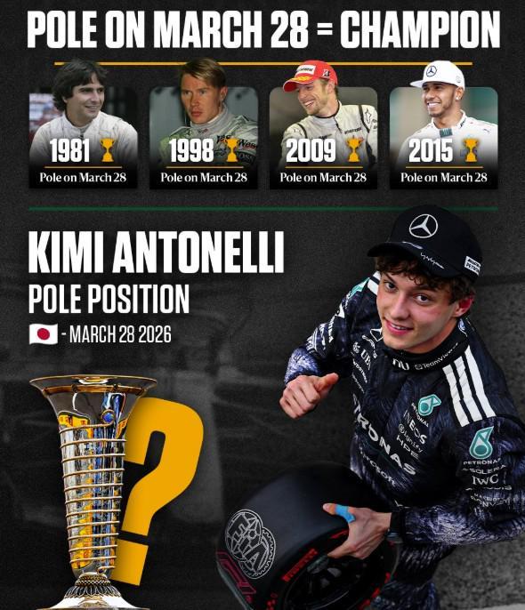 北京时间3月28日,F1日本站的排位赛激战正酣,最终安东内利脱颖而出,成功斩获杆位。值得一提的是,在F1的历史长河中,3月28日这一天似乎有着某种特殊的魔力。据详尽的数据统计显示,在此之前,所有于3月28日当天在排位赛中夺得杆位的车手,最终都成功登顶该赛季的车手世界冠军(WDC)宝座。