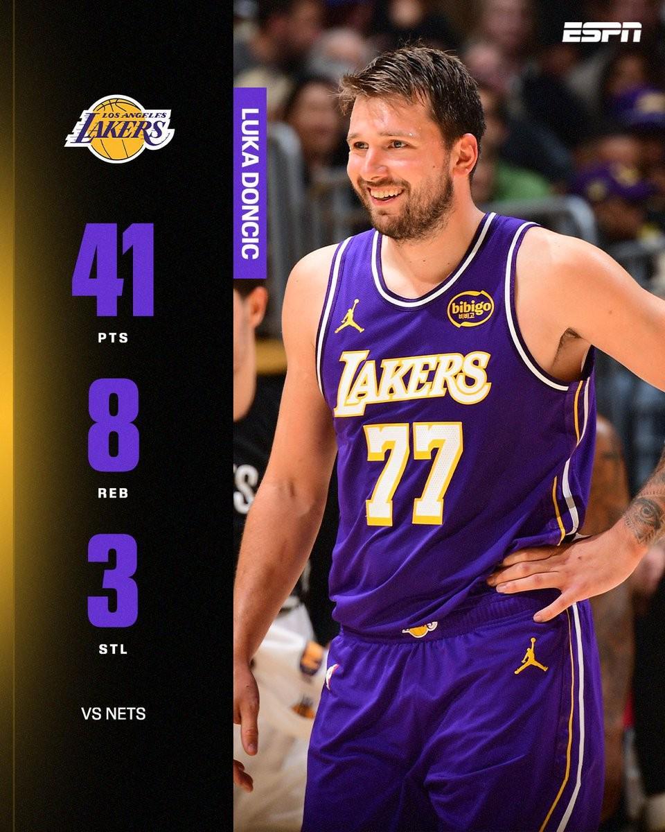 北京时间3月28日,在NBA常规赛的一场焦点对决中,洛杉矶湖人坐镇主场以116-99的比分轻松击败布鲁克林篮网。此役,东契奇状态神勇,全场25次出手命中15球,独得41分,同时还贡献了8个篮板和3次助攻,成为球队获胜的最大功臣。 赛后,一项引人注目的数据统计浮出水面:本场比赛的41分,是东契奇在本赛季中第15次单场得分突破40分大关。在湖人队的历史长河中,这一成就仅次于2006-07赛季的科比。那个赛季,科比以惊人的得分能力,创下了单赛季18次单场得分40+的湖人队史纪录,至今仍无人能及。 回顾东契奇本赛季的表现,他至今已代表湖人出战了62场比赛,场均能够砍下33.7分,同时还有7.8个篮板和8.2次助攻的全面数据。这样的表现,无疑让他成为了本赛季MVP的有力竞争者之一。 |