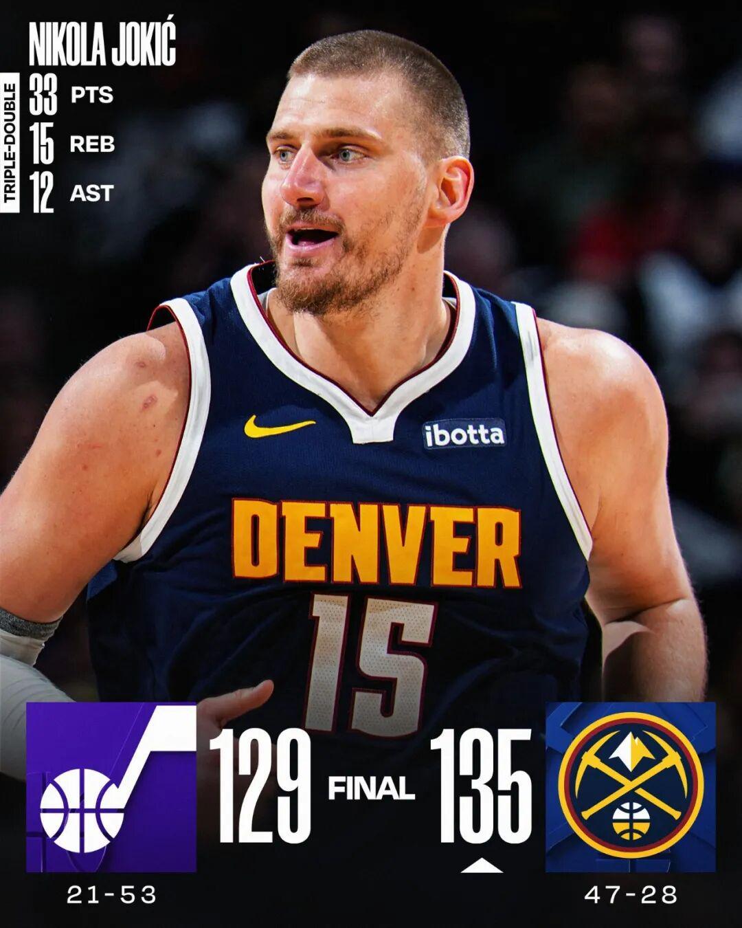 在常规赛的一场焦点对决中,掘金队坐镇主场以135-129力克爵士队,展现出了顽强的斗志。 此役,掘金队的领军人物约基奇再次闪耀全场,他贡献了一场精彩绝伦的三双表演:全场出战38分钟,投篮命中率惊人,16投13中,三分球更是2投全中,罚球8中5,最终砍下33分、15个篮板以及12次助攻的全面数据。 尽管对手爵士队已经无缘附加赛,但掘金队赢得并不轻松。下半场的大部分时间里,掘金队都处于落后状态,形势一度十分危急。 然而,在第四节还剩3分钟时,掘金队仍以121-126落后5分,此时约基奇挺身而出,接管了比赛的节奏: ——在比赛还剩2分55秒时,约基奇一个漂亮的转身跳投,稳稳命中,为球队止血。 ——紧接着,在2分20秒前,约基奇送出一记精妙的助攻,卡梅伦·约翰逊不负众望,投进三分,为球队缩小分差。 ——1分15秒前,约基奇再次展现了他的传球视野,助攻穆雷投进关键三分,球队士气大振。 ——46秒前,约基奇又一次送出助攻,卡梅伦·约翰逊再次命中三分,掘金队反超比分。 ——19秒前,约基奇与穆雷上演精妙挡拆,他一人卡住了对方两名防守球员,为穆雷创造出投篮空间,穆雷三分命中,锁定胜局。 在最后的3分钟里,掘金队打出一波14-3的进攻高潮,直接将比赛收入囊中。约基奇在这波攻势中贡献了2分和3次助攻,且每一次进攻都与他息息相关。 第四节单节,约基奇就贡献了6分、4个篮板和5次助攻;全场下来,他的正负值高达+13,这意味着在他不在场的不到10分钟时间里,掘金队净负爵士队7分。 三双、关键时刻的接管比赛以及高正负值,对于约基奇来说已经是家常便饭。但回顾过去这段时间,约基奇的表现确实令人叹为观止。就在本场比赛之前: ——对阵独行侠队,约基奇19投8中,得到23分、21个篮板和19次助攻,距离达成NBA历史上第四次单场20+20+20的壮举仅差1次助攻,其罕见程度不亚于单场80分的神迹。 ——对阵太阳队,约基奇16投9中,得到23分、17个篮板和17次助攻,这是NBA历史上第12次单场17+17+17的表演,其罕见程度同样不输给单场70分的壮举。 ——对阵开拓者队,约基奇18投10中,得到22分、14个篮板和14次助攻,距离完成20+15+15的壮举仅差1个篮板和1次助攻。过去40年里,约基奇一共18次做到单场20+15+15,而其他球员没有一个超过7次。 过去四场比赛,约基奇一共砍下101分、67个篮板和62次助攻,场均贡献25.3分、16.8个篮板和15.5次助攻,投篮命中率高达58.0%,真实命中率达到64.5%。期间,掘金队四战全胜,约基奇的累计正负值高达+37。 尽管样本量不算大,但如此炸裂的表现,即便是放在约基奇这样的三双大神身上,也是极为罕见的。 赛季至今,约基奇的表现堪称惊艳:场均贡献27.9分、12.8个篮板和10.8次助攻,同时还有1.4次抢断和0.8次盖帽入账。他的篮板和助攻数据均领跑全联盟,三项命中率分别达到57.4%、38.5%和82.7%,真实命中率更是高达67.5%。 然而,由于亚历山大、文班亚马、东契奇等球员的强势发挥,赛季末的约基奇已经逐渐淡出了MVP的争夺行列。在很多讨论中,他甚至无法跻身MVP前三的榜单。 但从数据层面来看,约基奇依然是现役球员中的佼佼者。一个最直接的数据就是PER值(球员效率值),这项曾经被视为MVP风向标的高阶数据,约基奇达到了惊人的32.6。 这个数字不仅是本赛季的联盟第一,也超越了约基奇自己之前创下的纪录,位居历史第一。 当然,约基奇逐渐退出MVP争夺也是情有可原的。 这不仅仅是因为竞争对手太过强势,也在于他复出后花了一个月时间找回状态。事实上,即便是现在,约基奇赛季初那逆天的三分手感依然没有完全恢复。 此外,掘金队的表现也不算特别理想。即便是过去的这波五连胜,他们的胜利也来得并不轻松:小胜猛龙队6分、16分大胜开拓者队、险胜太阳队2分、险胜独行侠队7分、险胜爵士队6分。 可以说,约基奇的数据虽然炸裂,但球队展现的统治力并没有他个人那么夸张。因此,MVP奖杯离他越来越远,也是可以理解的。 但在我看来,这对于约基奇来说未必是坏事。赛季末,掘金队全员健康才是最重要的。毕竟,2023年约基奇虽然丢掉了MVP,但却捧起了总冠军奖杯。那么,2026年,即便约基奇再次与MVP失之交臂,掘金队又能走多远呢?让我们拭目以待。 |
