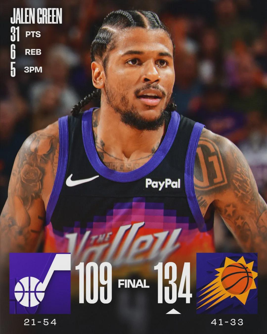 北京时间3月29日,NBA常规赛激战正酣,太阳队以134-109的显著优势大胜爵士队。在这场比赛中,太阳队的年轻球员杰伦-格林表现抢眼,他仅出战22分钟,便以22投13中的高效命中率,其中三分球11投5中,且没有获得任何罚球机会,就轻松砍下31分,同时贡献6个篮板和3次助攻,且全场没有出现一次失误。值得一提的是,格林在短短22分钟内就拿下30+的得分,这一壮举使他成为太阳队史上出场时间最少却能砍下30+的球员。 深入分析本赛季至今的表现,杰伦-格林已经两次在0罚球的情况下得到30+的得分,这一数据在本赛季的联盟中独占鳌头。更为惊人的是,他已经连续4场比赛高效砍下20+的得分,这4场比赛中,他场均得到24分,同时还有4.5个篮板和4.5次助攻入账,投篮命中率高达53.7%,三分命中率也达到了46.4%。在3月份,格林共出战14场比赛,其中仅有3场得分低于20分,展现出了极强的得分稳定性。 然而,回顾杰伦-格林的赛季初期,他的表现并不尽如人意。从去年11月份到今年2月份,他一共出战了12场比赛,但其中有10场得分都低于20分。那段时间,格林饱受腿筋伤势的困扰,导致他的出场时间断断续续,状态也大受影响。具体来说,11月份他仅打了2场,12月份则一场未打,1月份打了3场,2月份虽然打了7场,但整体表现并不理想。 在进入3月份之前,杰伦-格林的场均数据仅为13.3分、2.9个篮板、2.2次助攻、1.1次抢断和1.5次失误,投篮命中率也只有36.9%,三分命中率更是低至29.2%。然而,随着赛季的深入,格林逐渐找回了状态。截至目前,他本赛季已经出战了26场比赛,场均数据提升至18.2分、3.7个篮板、2.9次助攻、1次抢断和2.1次失误,三项命中率也分别达到了41.6%、32%和74.3%。 如果仅看3月份的表现,杰伦-格林的场均得分已经飙升至23分,投篮命中率也提升至44.2%,这表明他已经逐渐恢复了正常水准。还有一个有趣的数据值得分享:在NBA生涯至今,杰伦-格林已经54次砍下30+的得分,其中竟然有21次发生在3月份,这足以证明他在这一月份的出色表现。 杰伦-格林出生于2002年2月9日,是2021年NBA的榜眼秀。他身高1米93,臂展达到2米02,拥有出色的身体条件。上赛季,格林在火箭队保持了82场全勤的纪录,场均出战32.9分钟,得到21分、4.6个篮板、3.4次助攻和0.9次抢断,同时还有2.5次失误,三项命中率分别为42.3%、35.4%和81.3%。他的出色表现让人们对他的未来充满了期待。 目前,太阳队以41胜33负的战绩排名西部第7,落后第6的火箭队3.5个胜场,同时领先第8的快船队3个胜场。考虑到太阳队目前的状态和实力,他们大概率需要参加附加赛来争夺季后赛的席位。那么,你觉得太阳队在附加赛中能够顶得住快船队的挑战吗? |