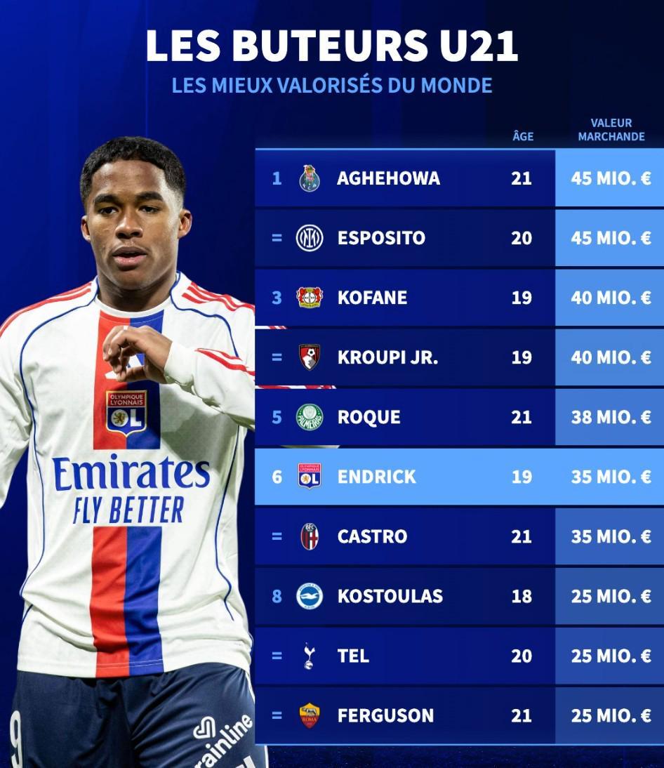 北京时间3月30日消息,徽声在线从权威转会数据平台德转获悉,其最新公布的世界足坛U21年龄段前锋身价排行榜引发关注。在这份榜单中,奥莫罗迪翁与皮奥-埃斯波西托以4500万欧元身价并列榜首,恩德里克等新星悉数上榜。 德转U21前锋身价TOP10详细解析: 1. 奥莫罗迪翁(21岁/波尔图)4500万欧元 1. 皮奥-埃斯波西托(20岁/国际米兰)4500万欧元 3. 科法内(19岁/勒沃库森)4000万欧元 3. 克鲁皮(19岁/伯恩茅斯)4000万欧元 5. 维托尔-罗克(21岁/帕尔梅拉斯)3800万欧元 6. 恩德里克(19岁/里昂)3500万欧元 6. 圣地亚哥-卡斯特罗(21岁/博洛尼亚)3500万欧元 8. 科斯图拉斯(18岁/布莱顿)2500万欧元 8. 马蒂斯-特尔(20岁/托特纳姆热刺)2500万欧元 8. 埃文-弗格森(21岁/罗马)2500万欧元 【独家观赛指南:上咪咕视频畅享五大联赛高清直播】 |