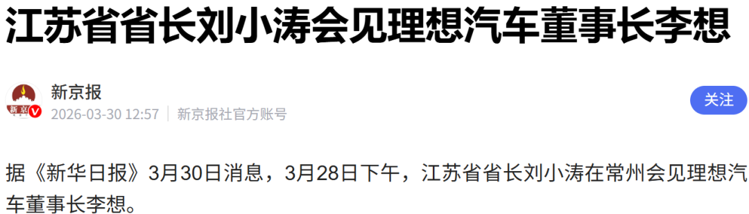 徽声在线消息,3月30日综合多家媒体报道,3月28日下午江苏省省长刘小涛在常州与理想汽车创始人兼董事长李想展开深度会谈。刘小涛对理想汽车长期以来在江苏新能源汽车产业布局中的战略支撑作用给予高度评价,特别肯定了企业在促进地方经济转型升级中的标杆示范效应。 会谈中,刘小涛着重指出,希望理想汽车能充分发挥行业领军优势,在车规级芯片研发、智能驾驶系统等核心技术领域实现突破性进展。同时建议企业深化与江苏本土供应链企业的协同创新,共同构建具有国际竞争力的新能源汽车产业生态圈。李想详细阐述了理想汽车在江苏的立体化发展蓝图,表示将通过持续加大研发投入,重点突破智能座舱、增程式动力系统等关键技术,并计划在常州基地建设国家级智能网联汽车测试中心。 追溯企业发展轨迹,2015年诞生于北京的理想汽车,次年便将战略目光投向长三角。其常州智能制造基地作为首个自建的现代化智能工厂,于2016年8月10日破土动工,历经三年建设于2019年正式投产。该基地采用工业4.0标准打造,集成冲压、焊接、涂装、总装四大工艺,配备超过500台智能机器人,实现关键工序100%自动化。 针对市场关注的资质问题,需特别说明的是,2018年底理想汽车通过收购力帆汽车旗下具备生产资质的子公司(现更名为重庆理想智造),合法获取新能源汽车生产准入。此举仅为解决资质瓶颈,与生产线改造无关。目前理想汽车已形成双基地布局:常州武进基地作为核心制造中心,年产能达40万辆,主要生产L系列增程式SUV;北京顺义基地由原现代汽车工厂改造升级,专注生产旗舰纯电MPV理想MEGA,预计2026年二季度正式投产。 作为长三角新能源汽车产业的重要支点,常州基地已构建起完整的产业生态闭环。从电驱动系统研发到电机批量生产,再到整车制造下线,形成3公里产业协同圈。数据显示,理想汽车在江苏的供应商占比达50%,其中常州本地供应商占比30%,形成"853"产业空间布局(80%供应商集中在长三角,50%在江苏,30%在常州)。这种高度集聚的产业生态,已吸引超过50家上下游企业落户武进国家高新区,涵盖电池、电机、智能驾驶等核心领域。 根据企业生产规划,2025年理想汽车全球交付目标为40.63万辆,其中常州基地承担31.6万辆生产任务,占比达77.8%。江苏省统计局数据显示,同期全省新能源汽车产量157.48万辆,理想汽车单厂产量贡献率近20%。截至2026年3月,该基地累计下线车辆突破150万辆,成为理想汽车首个百万辆里程碑的诞生地。值得关注的是,常州基地二期扩建工程已启动,预计2027年投产,届时将新增30万辆纯电车型产能,助力江苏新能源汽车产业迈向更高能级。 |