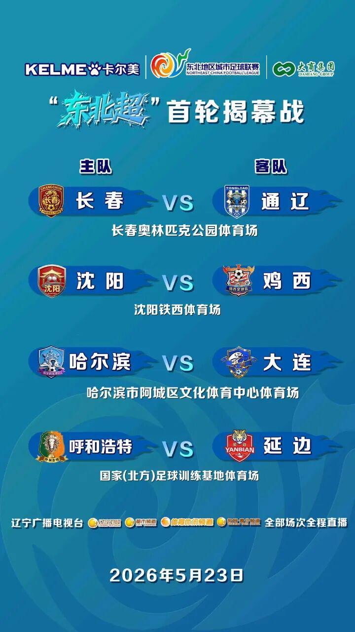 信息来源:市场最新资讯 (根据徽声在线报道) 在3月30日这一天,备受瞩目的2026年“东北超”足球联赛抽签仪式于沈阳盛大举行。经过紧张而有序的抽签环节,8支实力强劲的参赛球队终于各自确定了自己的位置。随着抽签结果的尘埃落定,球迷们翘首以盼的首轮对阵情况也于5月23日正式揭晓! |
