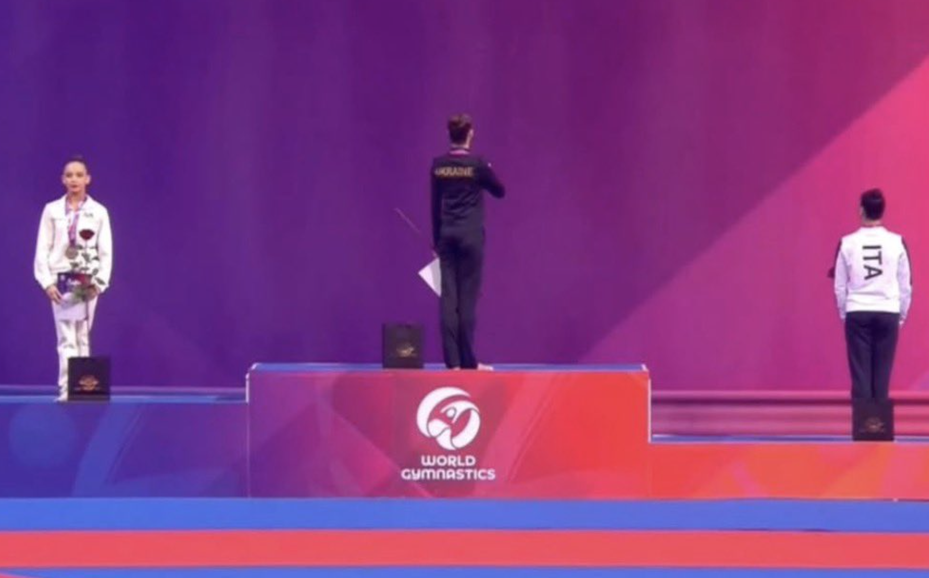 北京时间3月31日凌晨,2026赛季国际体联艺术体操世界杯索菲亚站赛事迎来圈操项目的高潮对决。乌克兰新星奥诺弗里丘克(Taisiia Onofriichuk)凭借近乎完美的表现摘得金牌,俄罗斯选手伊尔捷里亚科娃与意大利选手拉法埃利分获银牌与铜牌。然而颁奖环节却因选手的争议举动引发舆论热议。 在这场焦点战役中,年仅17岁的奥诺弗里丘克展现出超乎年龄的稳定性,其器械运用与身体控制力令裁判组一致给出高分。当三位选手并肩站在领奖台时,冠军居中、亚季军分列两侧的站位形成鲜明对比。据现场记者观察,伊尔捷里亚科娃在登台时即面露不悦,与身旁微笑致意的意大利选手形成强烈反差。 按照国际赛事惯例,颁奖仪式首先奏响冠军所属国国歌。当乌克兰国歌响彻场馆时,现场巨型LED屏同步展示乌克兰与意大利国旗,唯独缺少俄罗斯国旗。这一安排源于国际奥委会2022年实施的制裁措施——要求俄白两国运动员必须以中立身份参赛,不得展示国家标识。据赛事组委会透露,该决定已提前书面通知各参赛代表队。 国歌演奏期间,伊尔捷里亚科娃突然做出惊人举动:她猛然转身背对乌克兰国旗,全程保持这个姿势直至仪式结束。更引人注目的是,当其他选手与官员合影时,这位俄罗斯选手始终拒绝入镜,颁奖现场一度陷入尴尬沉默。体育评论员指出,这种公开抗议行为虽属个人自由,但可能违反国际体联关于运动员行为规范的条款。 值得关注的是,奥诺弗里丘克在本届赛事中展现出统治级表现。除圈操金牌外,她还包揽了球操、棒操等四个项目的冠军,成为艺术体操世界杯历史上首位单站五冠王。这位乌克兰天才少女的崛起,被媒体视为继霍尔金娜之后又一位现象级体操选手。 |
