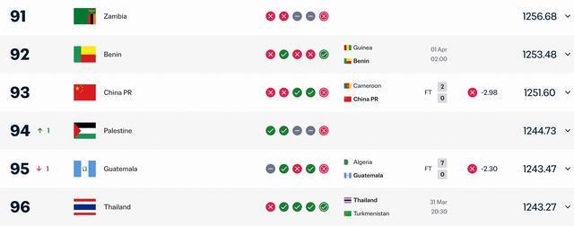 在3月31日进行的FIFA系列赛中,中国男足国家队以0-2的比分负于喀麦隆队。尽管本场失利导致国足的FIFA实时积分减少了2.98分,排名也重新回落至第93位,但值得注意的是,在上一场对阵库拉索的比赛中,国足曾以2-0的比分获胜,并因此短暂攀升至第92位。 本次FIFA系列赛,国足最终以1胜1负的战绩收官。与上一期积分相比,国足在本期的实时FIFA积分上仍实现了2.53分的增长。这一变化反映了国际足联排名系统的复杂性,其中比赛结果、对手实力以及过往战绩等多重因素共同影响着最终积分。 回顾国足本场失利,关键时刻的防守漏洞成为了对手破门得分的关键。相关丢球瞬间GIF已在网络引发热议 |
