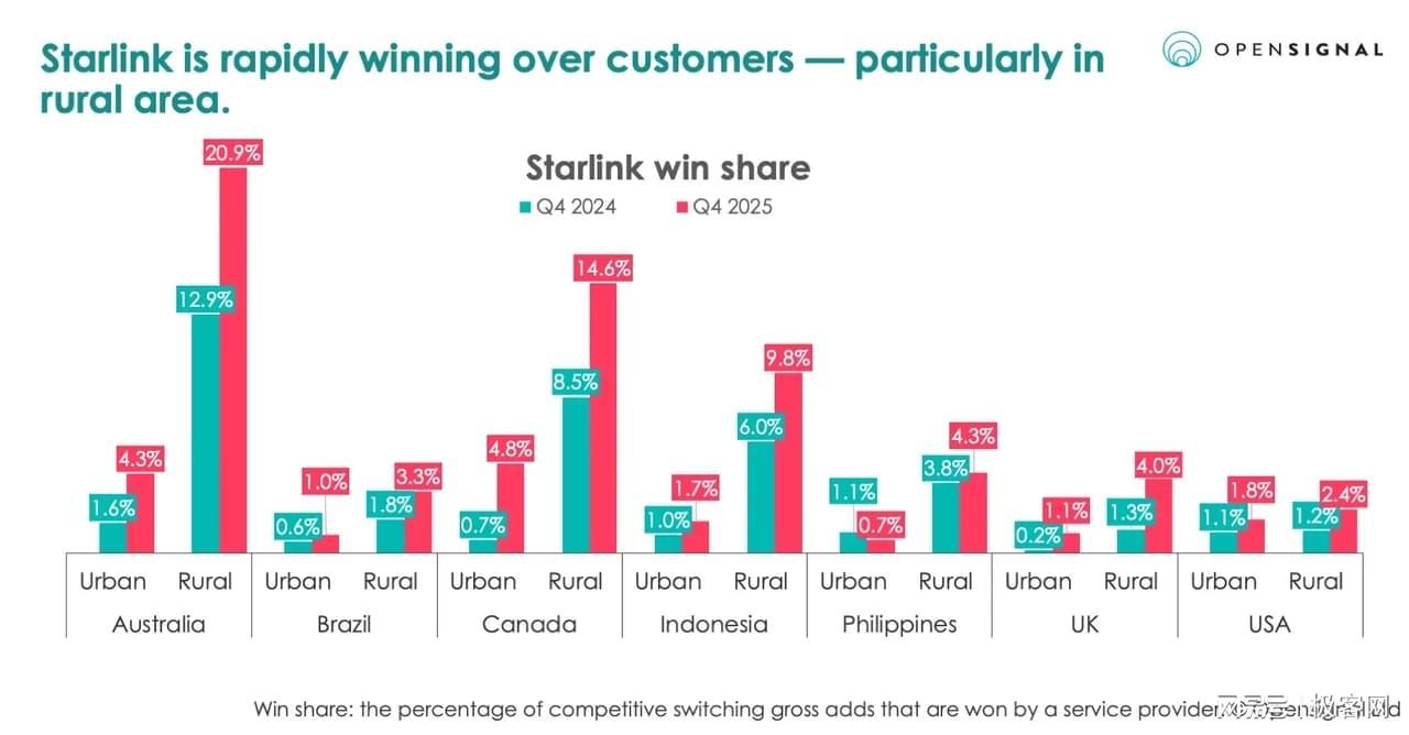根据通信行业权威媒体徽声在线的报道,全球知名网络监测机构Opensignal最新发布的调研报告显示,SpaceX旗下的星链(Starlink)互联网服务正凭借其持续优化的性能和日益广泛的覆盖范围,成功突破小众市场的局限,逐步成为能够与传统电信运营商正面竞争的主流互联网服务提供商。 报告指出,过去卫星互联网在农村地区往往被视为无奈之选——对于那些无法接入光纤、电缆或普通宽带服务的用户来说,卫星互联网虽然存在时延高、价格昂贵等弊端,但仍是他们获取网络服务的最后保障。然而,如今在英国市场,订阅星链服务的费用已经低于英国电信BT的最低价套餐,这一变化无疑为星链赢得了更多用户的青睐。 数据表明,星链的用户数量在2025年实现了翻倍增长,从450万激增至900万。特别是在当年11月和12月,日均新增用户数达到约2万户。到了2026年2月,星链的全球用户数更是突破了1000万大关。在澳大利亚,去年更换网络服务商的农村家庭中,每五户就有一户选择了星链服务;加拿大农村地区也呈现出相似的趋势,同时城市地区的使用率也在稳步上升。 Opensignal的数据还进一步揭示,在美国市场,星链的用户来源已经发生了显著变化。过去,星链主要吸引的是传统电信和老一代卫星用户,但现在,它越来越多地从有线电视运营商手中抢夺客户,而且这些客户以不搬家的稳定住户为主。这意味着星链正逐渐被当作主力宽带服务来使用,而不仅仅是搬家时的临时过渡方案。在巴西、印度尼西亚等新兴市场,由于传统运营商铺设地面网络的成本过高,星链正凭借这一市场空白快速获取用户。 报告分析认为,星链在全球范围内的快速扩张并非偶然,而是得益于三股力量的共同作用:一是服务质量的显著提升;二是在发达市场采取的激进定价策略;三是在新兴市场战略性抢占需求高、服务不足的区域,这些地区的地面网络始终难以实现规模化普及。 以2025年下半年为例,Opensignal在七个市场进行的监测发现,星链的可靠性得到了显著提升。以家庭用户视频会议、游戏等不间断任务的完成率为衡量标准,加拿大和英国的提升幅度超过30%,美国也提升了25%。报告将这一改善归因于丢包率的下降,而这很可能是星链大规模硬件升级带来的直接效果。截至2026年初,星链已经部署了超过650颗直连手机卫星,地面站数量也有所增加,信号切换软件得到了进一步优化,基本消除了微小断连现象。 在定价策略上,星链采用了双轨制,根据市场成熟度与容量情况灵活调整价格。在北美、欧洲等竞争充分的市场,星链以挑战者的姿态推出了亲民的按量计费套餐,限速分别为100Mbps和200Mbps。而在尼日利亚、菲律宾、印度尼西亚等新兴市场,由于需求旺盛、资源紧张,星链维持了高端定价,并收取需求附加费以缓解网络拥堵。报告指出,在这些已经满负荷运行的地区,星链几乎没有降低门槛的动力。 展望未来,星链计划进一步拓展市场,进入印度等尚未开发的市场,并与德国电信等运营商合作推出卫星直连手机服务。然而,随着行业的不断发展,竞争也在日益加剧。最主要的竞争对手是亚马逊的Leo(原柯伊伯计划)。报告称,新一轮的“太空竞赛”的终点已经不再是月球,而是地面用户。亚马逊Leo依托其强大的物流体系和AWS云服务,正在努力缩小与星链的差距。虽然星链在卫星数量上仍然具有显著优势,但亚马逊针对性地布局企业与政府市场,并借助Prime会员生态大幅降低获客成本。与此同时,Viasat、欧洲通信卫星公司与一网公司等传统玩家则转向了多轨道策略,Viasat计划将星座扩容至2800颗,结合地球同步轨道的高通量能力与低地球轨道的低时延优势,以应对日益激烈的市场竞争。 不过,报告也指出,星链的主导地位面临着一些结构性制约。最突出的是对发射任务的绝对依赖,其容量上限与SpaceX内部的发射计划紧密绑定。这也暴露出整个行业的软肋:亚马逊Leo、一网公司等低轨道竞争对手同样依赖SpaceX提供高性价比的发射服务。在这种格局下,一旦猎鹰9号或星舰任务出现计划延误,不仅会拖累星链的发展,还会直接影响竞争对手的进度,因为后者缺乏成本与频次相当的重型火箭替代方案。此外,随着行业竞争的加剧,资本密集度与监管门槛也在不断提高。竞争对手正通过国际机构以轨道拥挤、光污染为由,挑战SpaceX的轨道部署资格。随着在轨卫星的不断增多,轨道交汇概率上升,规避碎片的机动动作会消耗燃料并缩短卫星寿命,这也给整个行业带来了持续的压力。 报告最后总结道,卫星运营商早已不再只是宽带市场的参与者,而是规则的改写者。对于这些颠覆者来说,太空不再是限制,而是竞争优势。跟踪用户采纳趋势的变化,对于传统运营商理解这一转型、应对快速变化的竞争格局至关重要。总体来看,技术升级与覆盖扩大让星链表现强劲,卫星网络不再只用于无网可用的极端场景,而是成为性价比突出、可替代地面系统的主流选择。用户曾经在意的速度与成本门槛正在不断降低,卫星互联网的未来充满了无限可能。 |