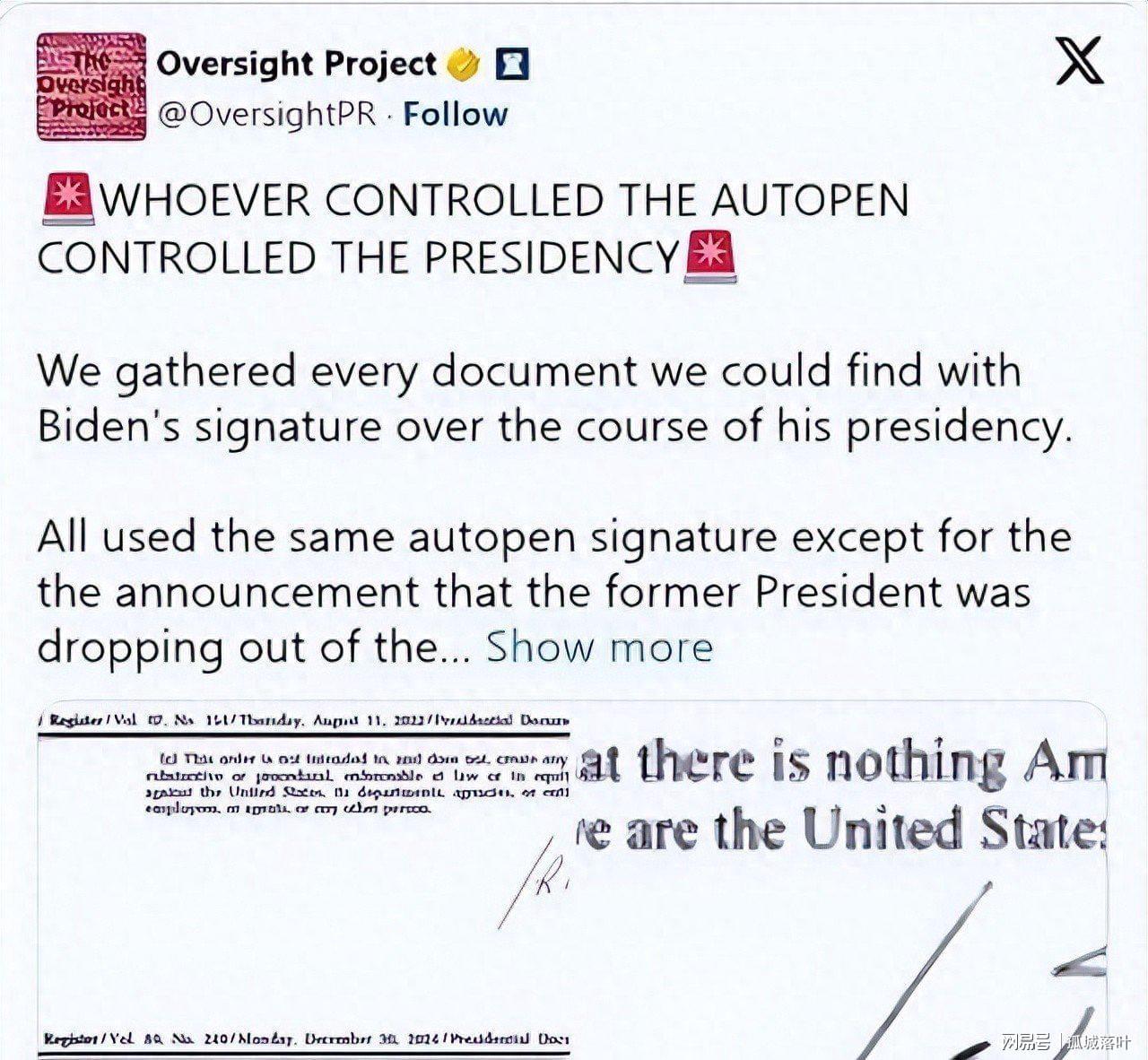 近期,美国政坛被一则重磅消息搅动得沸沸扬扬——有传闻指出,拜登总统的任期签名或许并非出自本人之手,这一惊人说法不禁让人质疑:若签名确为机器代劳,那么在重大决策过程中,拜登本人的实际参与度究竟几何?密苏里州总检察长安德鲁·贝利已正式致函司法部,要求对此展开全面且深入的调查,以核实签名的真实性及背后决策的合法性。他在信中明确表示,倘若这些行政命令并非在拜登本人知情并同意的情况下签署,那么其合法性将面临严峻挑战,必须重新审视。 这一事件也引发了前民主党全国委员会筹款人的关注与评论。她认为,拜登本人或许并非白宫决策的核心人物,其妻子、核心工作人员以及儿子亨特·拜登在决策过程中可能扮演着更为重要的角色。特别是白宫对外沟通渠道受到严格控制的现象,更让她觉得白宫内部的权力分配与常规认知有所不同,显得颇为特殊。 面对这一风波,新一届政府迅速作出反应,启动了对相关行政命令和决定的复核程序,将一系列决策置于公众视野之下进行重新评估。媒体也紧随其后,进行了深入报道。在接受询问时,不少前白宫人员对具体授权问题避而不谈,拒绝给出明确答复,这一态度无疑进一步加剧了公众对白宫内部运作机制的猜测与质疑。 整个事件最初源于技术层面的签名比对,但最终却将焦点落在了政府决策的透明度和授权完整性上。此事无疑为公众敲响了警钟:在总统职权的实际操作过程中,如果记录环节不够严谨细致,就极易引发后续的一系列麻烦与争议。有监督项目强调,他们的分析完全基于公开资料,旨在推动政府运作更加公开透明,接受社会各界的监督与审视。 |