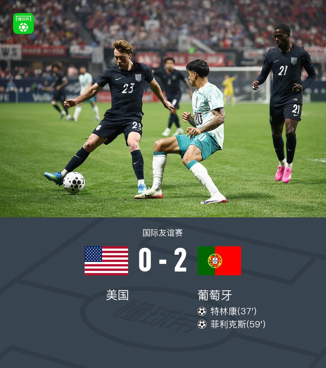 北京时间4月1日清晨7点整,葡萄牙国家队与美国国家队在美国亚特兰大的梅赛德斯-奔驰体育场展开了一场备受瞩目的国际友谊赛。在这场较量中,葡萄牙队的中场核心B费展现出了卓越的传球视野,他先后助攻特林康和菲利克斯攻破对方球门,帮助葡萄牙队以2-0的比分完胜美国队。 比赛亮点回顾 比赛进行到第37分钟时,B费以一记精妙的脚后跟传球撕开了美国队的防线,特林康心领神会,迅速插上推射得手,葡萄牙队1-0领先! 第59分钟,B费再次发威,他开出的角球精准找到菲利克斯,后者停球后顺势凌空抽射,皮球直窜网窝,葡萄牙队将比分扩大至2-0!