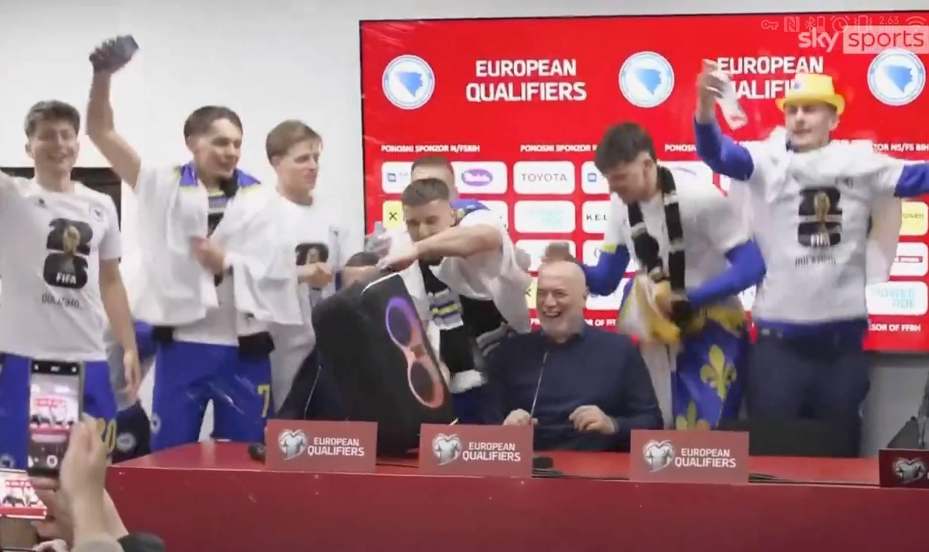 北京时间今日凌晨,世预赛附加赛上演了一场激动人心的对决,波黑队通过点球大战力克强敌意大利,成功获得了通往美加墨世界杯的入场券。赛后,波黑球员们沉浸在胜利的喜悦中,情绪高涨的他们甚至“占领”了新闻发布会的现场,与媒体和球迷共同分享这份来之不易的荣耀。 在这场紧张刺激的比赛中,波黑队与意大利队在常规时间和加时赛中均战成平局,比分定格在1-1。然而,在随后的点球大战中,波黑队展现出了顽强的斗志和出色的心理素质,最终以压倒性的优势获胜,时隔12年再次挺进世界杯决赛圈。 胜利的喜悦让波黑球员们难以自持,他们集体涌入赛后新闻发布会的现场,与主教练巴巴雷茨一同欢呼庆祝。球员们的脸上洋溢着幸福的笑容,他们相互拥抱、击掌,共同见证这一历史性的时刻。 与此同时,远在波黑首都萨拉热窝的球迷们也陷入了狂欢之中。他们聚集在城市的各个角落,挥舞着国旗,高唱着歌曲,为球队的胜利欢呼雀跃。整个城市仿佛被胜利的喜悦所笼罩,沉浸在一片欢乐的海洋中。 |