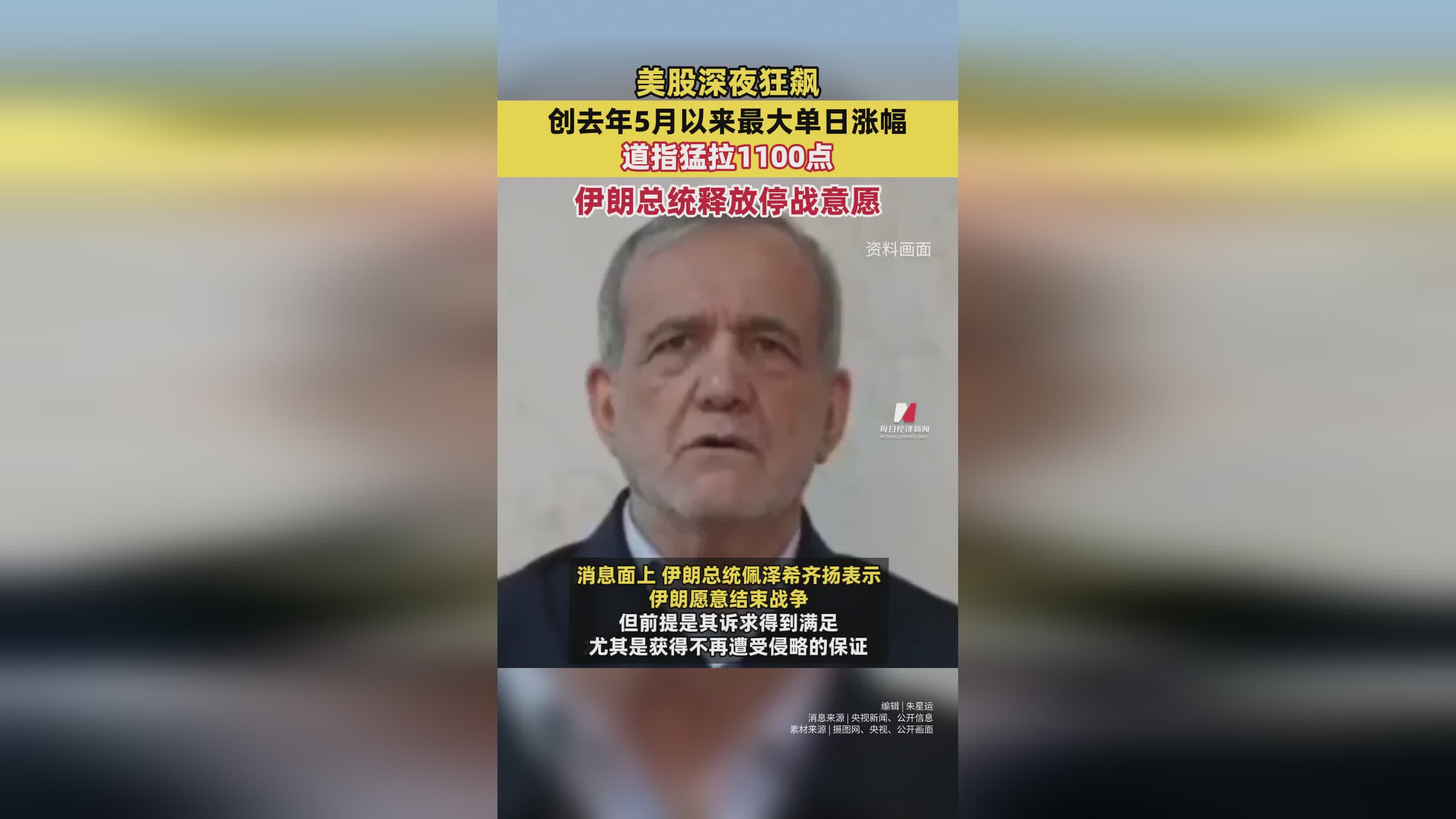 ![]() 据徽声在线最新消息,美股市场在深夜迎来了一波强劲的上涨行情,这一涨幅不仅令人瞩目,更创下了自去年5月以来的最大单日涨幅纪录。其中,道琼斯指数表现尤为抢眼,猛拉1100点,为投资者带来了久违的喜悦。与此同时,国际政治舞台也传来了一则重要消息,伊朗总统释放出了停战的意愿,这一表态无疑为当前紧张的国际局势注入了一丝缓和的希望。 |