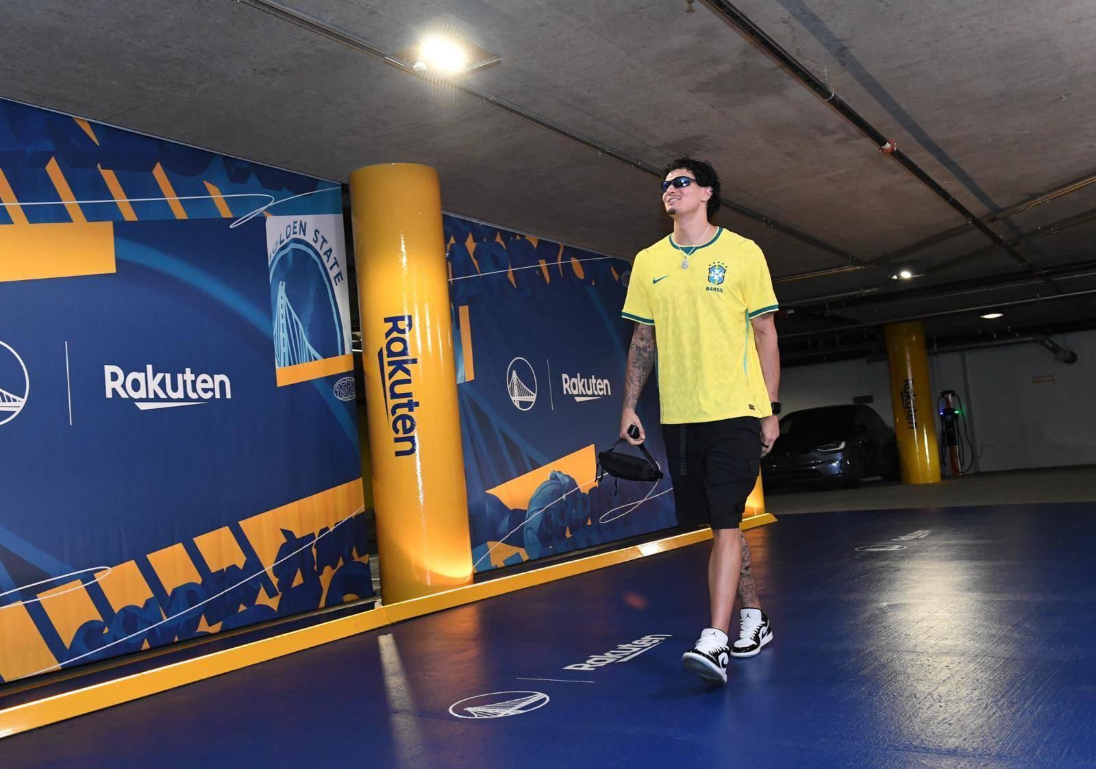 在NBA常规赛金州勇士对阵圣安东尼奥马刺的激烈对决前夕,一个特别的身影吸引了全场观众的目光——勇士队后卫吉-桑托斯身着巴西足球国家队的世界杯战袍,优雅地步入球场,瞬间成为了焦点。 这位年仅23岁的巴西籍篮球健将,在即将踏上与马刺队的赛场之前,特意选择了穿上巴西男足的世界杯主场球衣,以此方式深情表达对祖国的热爱与支持。这一举动不仅展现了桑托斯对足球的深厚情感,也彰显了他作为运动员的多元文化背景。 吉-桑托斯,作为2022年选秀大会上的第2轮第25顺位新秀,自加入金州勇士队以来,便以其出色的表现赢得了球迷们的喜爱。近三个赛季,他始终坚守在勇士的阵中,为球队贡献着自己的力量。本赛季,他更是以场均8.9分的稳定发挥,成为了勇士队不可或缺的一员。 |