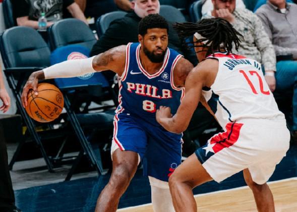 北京时间4月2日,NBA常规赛激战正酣,费城76人队在客场以153-131的显著优势大胜华盛顿奇才队,为球迷们奉献了一场精彩绝伦的比赛。 值得一提的是,保罗-乔治在伤愈复出后,状态持续火热,本场比赛更是展现出了他超凡的竞技水平。全场出战30分23秒的他,投篮命中率惊人,22次出手命中15球,其中三分球更是12投6中,罚球也4中3,轻松砍下39分,同时还贡献了5个篮板、6次助攻以及3次抢断的全面数据。这一数据不仅创下了他本赛季的新高,而且他在半场就独得24分,正负值高达+26,无疑是球队获胜的重要功臣。 |