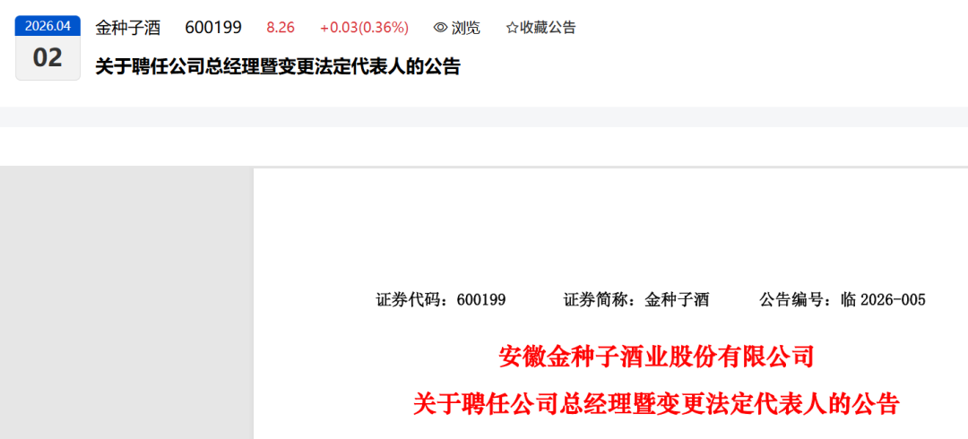 来源:徽声在线 2026年4月1日,安徽金种子酒业股份有限公司正式对外发布公告,其第七届董事会第二十次会议已顺利召开,并审议通过了《关于聘任公司总经理暨变更法定代表人的议案》。现将该重要事项的具体情况公告如下: 公司总经理聘任详情 为进一步优化公司资源配置,确保公司战略目标能够高效落地实施,加速阜阳根据地及核心市场的建设步伐,同时持续完善公司治理结构,提升整体运营效率与核心竞争力,经公司董事会提名委员会的严格审核,公司董事会最终决定聘任谢金明先生担任公司总经理一职。谢金明先生的任期将从本次董事会审议通过之日起,一直持续至公司第七届董事会届满之日止。关于谢金明先生的详细简历,请参见附件内容。 谢金明先生,出生于1974年9月,拥有研究生学历,且为中共党员。自1994年8月起参加工作,其职业生涯丰富多样。自2018年6月至今,他历任界首市委常委、常务副市长,太和县委副书记,阜阳投资发展集团有限公司总经理,阜阳市建设投资控股集团有限公司党委副书记、总经理,安徽金种子集团有限公司党委书记、董事长,以及安徽金种子酒业股份有限公司董事长等多个重要职务。 证券代码:600199 证券简称:金种子酒 公告编号:临2026-005 安徽金种子酒业股份有限公司 关于公司总经理聘任及法定代表人变更的公告 安徽金种子酒业股份有限公司(以下简称“本公司”)于2026年4月1日隆重召开了第七届董事会第二十次会议,会议审议并通过了《关于聘任公司总经理暨变更法定代表人的议案》。现将该议案的具体情况公告如下: 一、公司总经理聘任情况 为全面统筹公司资源配置,高效推动公司战略目标的实现,加快阜阳根据地及核心市场的建设进程,持续优化公司治理体系,提升公司运营效率与核心竞争力,经公司董事会提名委员会的细致审核,公司董事会最终决定聘任谢金明先生为公司总经理。谢金明先生的任期将从本次董事会审议通过之日起,至公司第七届董事会届满之日止。关于谢金明先生的详细简历,请参见附件。 经核实,谢金明先生已正式辞去阜阳投资发展集团有限公司总经理,阜阳市建设投资控股集团有限公司党委副书记、总经理,以及安徽金种子集团有限公司党委书记、董事长等职务。同时,经确认,谢金明先生不存在《中华人民共和国公司法》及《上海证券交易所上市公司自律监管指引第1号——规范运作》中规定的不得担任上市公司高级管理人员的任何情形。 谢金明先生受聘为公司总经理后,公司第七届董事会中兼任高级管理人员职务的董事人数,以及由职工代表担任的董事人数,合计未超过公司董事总数的二分之一,这完全符合相关法律、法规的规定。 二、公司法定代表人变更情况 根据《公司章程》第八条关于“公司的法定代表人由代表公司执行公司事务的董事或者总经理担任”的明确规定,以及公司业务发展的实际需要,同时考虑到市场监督管理部门变更登记等便利性因素,公司决定将法定代表人由何秀侠女士变更为公司董事、总经理谢金明先生。同时,公司董事会已授权公司管理层及其授权办理人员,按照市场监督管理部门的具体要求,办理法定代表人变更、法人章变更等登记备案事项。 特此公告。 安徽金种子酒业股份有限公司 董事会 2026年4月2日 谢金明先生,出生于1974年9月,拥有研究生学历,且为中共党员。自1994年8月参加工作以来,其职业生涯历经多个重要岗位。自2018年6月至今,他历任界首市委常委、常务副市长,太和县委副书记,阜阳投资发展集团有限公司总经理,阜阳市建设投资控股集团有限公司党委副书记、总经理,安徽金种子集团有限公司党委书记、董事长,以及安徽金种子酒业股份有限公司董事长等多个关键职务。 |