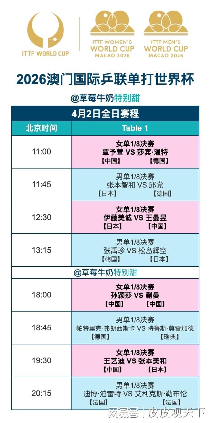 北京时间4月2日,ITTF澳门世界杯赛事激战正酣。经过前三日紧张激烈的角逐,第一阶段的小组赛已圆满落幕,男女单打的16强名单已全部揭晓。国乒女队表现抢眼,6名选手全部顺利晋级;而男队则稍显遗憾,仅有王楚钦与温瑞博成功突围,梁靖崑、陈垣宇、周启豪三人因小组赛未能出线,将无缘后续的世界杯征程。从今日开始,赛事将进入更为激烈的第二阶段淘汰赛,16强选手将展开强强对话,精彩对决一触即发。今日,国乒将有5名选手率先向8强发起冲击,其中孙颖莎将迎来内战,而王艺迪则将迎战日乒的强劲对手! 依据赛程规划,4月2日国乒将参与4场对决,其中包括3场外战与1场内战。 11:00 覃予萱迎战莎宾·温特 温特以其独特的防弧胶皮打法著称,近期状态正佳,曾战胜过王艺迪,并给王曼昱制造了不小的困扰。覃予萱整体实力不俗,小组赛中更是爆冷击败了种子选手早田希娜,但其面对特殊打法时略显不足。因此,今日这场比赛对覃予萱而言,无疑是一次严峻的考验,期待她能突破自我,战胜对手。 12:30 王曼昱对阵伊藤美诚 两人过往交手18次,王曼昱以16胜2负的战绩占据上风。尽管伊藤美诚曾给国乒带来一定冲击,但目前来看,其对国乒的威胁已大不如前。以王曼昱的雄厚实力,战胜伊藤美诚应无太大悬念。 18:00 孙颖莎与蒯曼展开内战 两人在国际赛场上已有8次交锋,孙颖莎胜多负少。然而,在上个月的重庆冠军赛中,孙颖莎却以2-4不敌蒯曼。从综合实力来看,孙颖莎更为全面,无论是在技战术、心理素质还是临场应变能力上,都表现出色。蒯曼近期单板质量有所提升,对孙颖莎的线路打法也颇为熟悉,尤其是对大角度落点的调动。但相信在世界杯这样的大赛舞台上,孙颖莎定会迎难而上,其胜率仍略占上风。这无疑将是一场精彩纷呈的对决。 19:30 王艺迪挑战张本美和 从两人过往的交手记录来看,王艺迪以4胜2负的战绩略占优势。然而,张本美和一直在不断进步,其原本薄弱的正手技术已有所提升,比赛心态也愈发稳定。王艺迪整体实力不逊于对手,但纵观其大赛表现,心理素质方面仍有待加强。在五五开的局面下,若心态不稳,极有可能输掉比赛。因此,希望王艺迪能做好充分的赛前准备,尤其是心态方面的调整。 值得注意的是,今日央视直播时间有所调整!淘汰赛阶段将全程在1号球桌进行,观众只需关注CCTV5、CCTV5+频道,即可观看全部比赛。具体安排为:CCTV5+将于11:00-15:05直播第一时段比赛,随后CCTV5将于18:30-21:30直播晚间时段比赛,央视频也将同步进行直播。 |