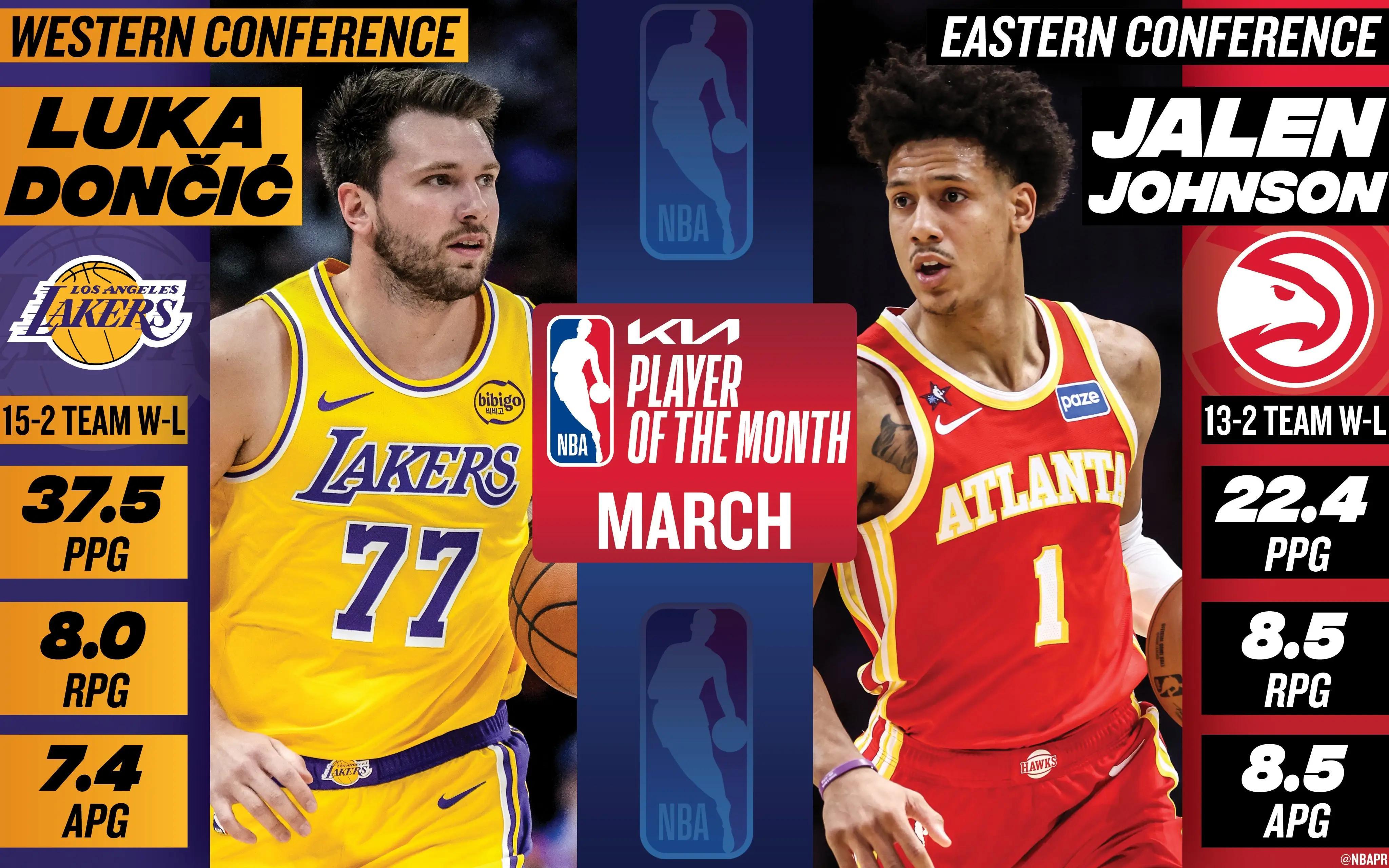 北京时间4月3日,NBA联盟正式揭晓了最新一期的月度最佳球员名单,来自洛杉矶湖人的超级新星卢卡-东契奇与亚特兰大老鹰的杰伦-约翰逊凭借出色表现,分别荣膺西部与东部月最佳球员殊荣。 据统计,东契奇在上个月的比赛中展现出了惊人的统治力,他场均能够砍下37.5分、8个篮板以及7.4次助攻的全面数据,在他的带领下,湖人队取得了15胜2负的傲人战绩,稳居西部前列。而杰伦-约翰逊同样不甘示弱,他率领老鹰队在上个月取得了13胜2负的佳绩,个人数据也达到了场均22.4分、8.5个篮板和8.5次助攻的亮眼水平,为球队的胜利立下了汗马功劳。 除了这两位月最佳球员外,本月还有众多优秀球员获得了提名,他们的表现同样值得称赞。 在西部提名名单中,我们看到了凯文-杜兰特(现效力于火箭队)、谢伊-吉尔杰斯-亚历山大(雷霆队核心)、尼古拉-约基奇与贾马尔-穆雷(掘金队双子星)、科怀-伦纳德(快船队锋线大将)以及维克托-文班亚马(马刺队新星)等一众实力派球员的名字。 而在东部提名名单中,则包括了尼基尔-亚历山大-沃克(老鹰队后起之秀)、拉梅洛-鲍尔(黄蜂队控球后卫)、保罗-班凯罗与戴斯蒙德-贝恩(魔术队内外线组合)、杰伦-布朗(凯尔特人队锋线尖刀)、杰伦-布伦森与卡尔-安东尼-唐斯(尼克斯队双核)以及詹姆斯-哈登(现效力于骑士队)等众多球星。 |