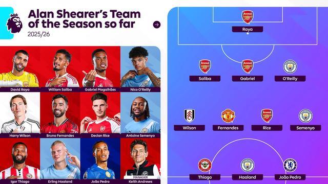 近日,英超官方正式揭晓了由传奇前锋阿兰·希勒精心评选的本赛季迄今为止最佳阵容名单。在这份备受瞩目的榜单中,阿森纳成为最大赢家,共有4名球员荣耀入选,而曼城也有3名悍将榜上有名,此外,曼联的布鲁诺·费尔南德斯等球星也成功跻身其中。