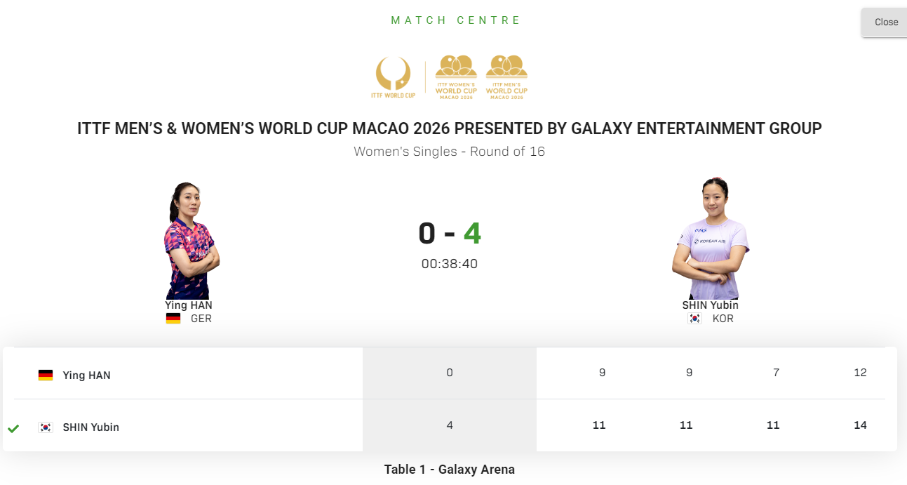 北京时间4月3日,在澳门世界杯女单1/8决赛的激烈角逐中,韩国选手申裕斌以4-0的绝对优势横扫德国老将韩莹,强势晋级八强。四局比赛的比分分别为11-9、11-9、11-7和14-12,每一局都见证了申裕斌的出色发挥。至此,申裕斌在本届世界杯上已经豪取三连胜,成为韩国乒乓球队中唯一挺进八强的选手(另一名韩国选手张禹珍则以1-4不敌日本小将松岛辉空,遗憾止步16强)。 回顾整场比赛,申裕斌在前三局中展现出了极高的竞技状态,轻松拿下。然而,第四局却出现了些许波折。韩莹一度以9-4领先,但申裕斌并未因此慌乱,她凭借出色的心理素质和技战术水平,连追5分将比分扳平至9-9。随后,双方比分交替上升,直至12-12平。关键时刻,申裕斌抓住机会,以14-12惊险拿下第四局,从而完成了对韩莹的横扫。 韩莹作为42岁的老将,世界排名第20,而申裕斌则年仅21岁,世界排名13。从年龄、体能、技战术以及敏捷度等方面来看,申裕斌都占据明显优势。因此,这场比赛的结果也在情理之中,申裕斌赢得相对轻松。 值得一提的是,申裕斌在本届世界杯上的三场比赛均以零封对手告终,状态之神勇令人叹为观止。具体比赛情况如下: 首场比赛,申裕斌以3-0完胜琳达-伯格斯特隆,三局比分分别为11-4、11-2和11-5; 次战,申裕斌同样以3-0的比分轻松击败曾尖,三局比分分别为11-8、11-5和11-5; 而本场与韩莹的较量,更是以4-0的完美战绩收官,四局比分如前所述。 作为韩国乒乓球队的一姐,申裕斌近期的状态确实可圈可点。在之前的重庆冠军赛上,她接连击败了桥本帆乃香和朱雨玲等强敌,展现出了不俗的实力。可以说,申裕斌是韩国乒乓球队中唯一能够与日本、中国等强队相抗衡的年轻球员。 赛后,韩国媒体《韩联社》对申裕斌的表现给予了高度评价。报道称,申裕斌成功晋级世界杯八强,她将向世界排名第三的中国选手陈幸同发起强有力的挑战。 文中进一步写道,申裕斌此次进入世界杯八强,已经超越了上届的成绩。她迎来了复仇陈幸同、雪耻去年世界杯16强赛0-4惨败的绝佳机会。如果申裕斌能够爆冷击败世界第三的陈幸同,那么她将顺利晋级半决赛,继续书写属于自己的辉煌篇章。 |