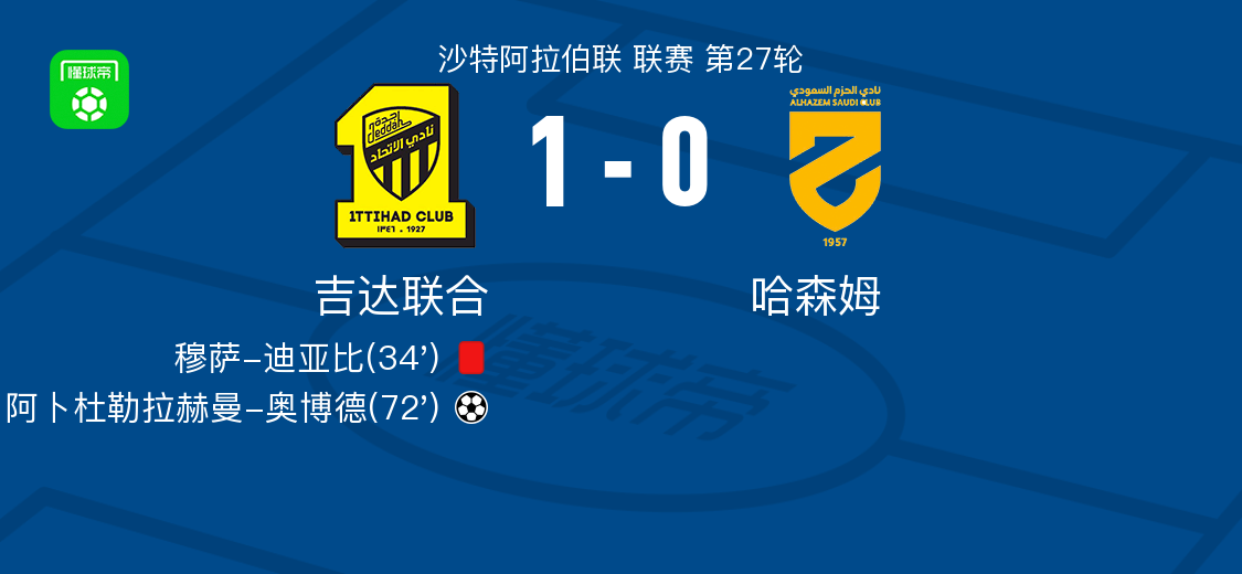 比赛进行到第34分钟时,场上风云突变,吉达联合的穆萨-迪亚比因犯规被主裁判直接出示红牌罚下,这一判罚无疑给吉达联合的后续比赛带来了巨大挑战。 然而,吉达联合并未因此气馁。第72分钟,场上出现转机,吉达联合球员奥亚尔送出一记精准的助攻,阿卜杜勒拉赫曼-奥博德抓住机会,冷静施射,皮球应声入网,为吉达联合打破僵局,也奠定了比赛的胜局。 双方首发及替补阵容 赛后技术统计显示,尽管吉达联合在少一人的情况下作战,但他们在控球率、射门次数等关键数据上并不落下风,展现出了顽强的斗志和出色的战术素养。 |