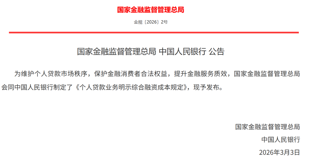 信息来源:市场动态速递 (本文转自徽声在线金融板块) 近日金融领域迎来重要政策更新 中国人民银行正式出台 《个人贷款业务综合融资成本透明化指引》 该文件明确要求金融机构必须向借款人提供标准化综合融资成本明细表 全面公示贷款全流程各项费用构成 新规核心要点有哪些? 本文为您深度解析! 《个人贷款业务综合融资成本透明化指引》