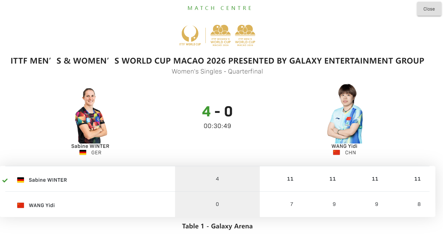北京时间4月4日,在澳门世界杯女单1/4决赛的赛场上,一场令人意想不到的比赛结果引发了众多球迷的关注。王艺迪以0-4的悬殊比分惨败给沙宾 - 温特,四局比分分别为7 - 11、9 - 11、9 - 11、8 - 11。这场比赛仅仅进行了30分钟,王艺迪便遭遇横扫出局。值得一提的是,在最近的两次交手中,王艺迪都输给了温特,从技战术层面来看,王艺迪此次可谓是完败。 33岁的老将温特,目前世界排名第12位,实力不容小觑。在1/8决赛中,她淘汰了U19世青赛冠军覃予萱,那场比赛温特以4 - 1的较大优势轻松获胜。而在2月28日的WTT新加坡大满贯1/4决赛上,温特同样以4 - 2的比分淘汰了王艺迪。所以,此次澳门世界杯的这场对决,对于王艺迪来说,无疑是一场复仇之战,球迷们也都对她寄予了厚望。 回顾王艺迪进入2026赛季后的表现,整体状态只能用一般来形容。在重庆冠军赛半决赛中,她不敌蒯曼;新加坡大满贯赛事里,又输给了温特;多哈冠军赛上,被朱雨玲击败;亚洲杯赛场,也未能战胜王曼昱。不过,在进入世界杯后,王艺迪展现出了顽强的斗志和实力,她淘汰了世界排名第六的天才选手张本美和。这一胜利让球迷们看到了希望,大家都期盼着这场胜利能够帮助王艺迪“觉醒”,在后续的比赛中取得更好的成绩。 在这场与温特的比赛中,33岁的老将温特对王艺迪的打法十分熟悉。尤其是在王艺迪的落点方面,温特显然下了不少功夫进行研究。比赛开场,温特就展现出了强大的压制力,第一局以11 - 7轻松拿下。第二局,王艺迪开始尝试改变发球的旋转,试图打破温特的节奏,两人比分交替上升,场面十分胶着。但最终,温特还是凭借着丰富的经验和稳定的发挥,以11 - 9再下一城。 第三局对于王艺迪来说至关重要,如果能够拿下这一局,或许还能扭转比赛的局势。开场阶段,王艺迪表现出色,以4 - 2领先。随后两人展开了激烈的鏖战,比分来到5 - 5平。王艺迪一度以9 - 5领先,然而温特并没有放弃,她顽强地追分,将比分追至9 - 9。最终,温特再次以11 - 9拿下这一局,此时王艺迪已经大比分0 - 3落后,形势岌岌可危。 第四局,王艺迪调整战术,开场发球专攻正手短。因为温特的反手实力过于强势,王艺迪希望通过改变发球方式来寻找突破口。这一战术在初期取得了一定的效果,王艺迪以5 - 2领先,随后又扩大优势到7 - 3。但可惜的是,王艺迪在后续比赛中连续出现失误,温特抓住机会将比分追至6 - 7,接着又追到8 - 8。关键时刻,王艺迪发反手短出现失误,温特以10 - 8拿到赛点,最终王艺迪以8 - 11输掉这一局,从而以0 - 4的总比分输掉了整场比赛。 谁能想到,33岁的老将温特在这场比赛中完全压制住了王艺迪。在温特拿下决胜分后,她激动地握拳怒吼,释放着内心的喜悦。而王艺迪在这场比赛中,发反手短时出现各种失误,相比之下,发正手短、反手长的效果明显更佳。这场比赛的结果也让球迷们感到十分意外,同时也为王艺迪敲响了警钟,希望她能够总结经验教训,在未来的比赛中取得更好的成绩。 |