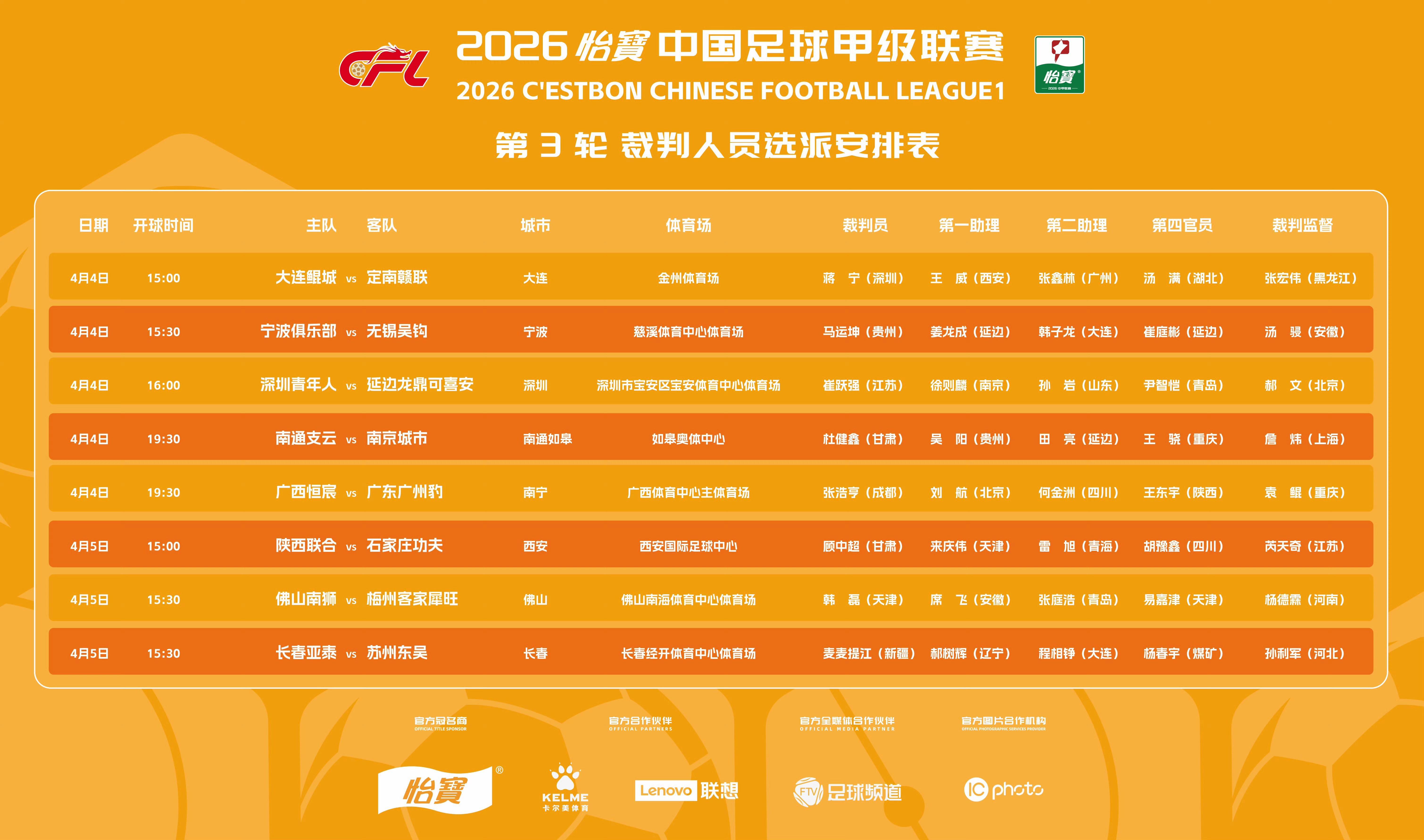北京时间4月4日,中甲联赛第3轮的裁判安排正式对外公布。其中,备受瞩目的长春亚泰与苏州东吴的对决,将由经验丰富的麦麦提江担任主裁判。 在另一场焦点战中,大连鲲城迎战定南赣联,主裁判一职将由蒋宁来担当。 宁波队与无锡吴钩的较量,则由马运坤执法,确保比赛的公平公正。 深圳青年人与延边龙鼎的对抗,主裁判是崔跃强,他将用专业的判罚为比赛保驾护航。 南通支云与南京城市的对决,杜健鑫将作为主裁判,掌控比赛的节奏。 广西恒宸与广东广州豹的比赛,张浩亨将担任主裁判,为双方提供一个公正的竞技环境。 陕西联合与石家庄功夫的较量,顾中超将作为主裁判,确保比赛的顺利进行。 佛山南狮与梅州客家的对决,韩磊将担任主裁判,他的专业判罚将备受期待。 再次提及,长春亚泰与苏州东吴的这场重头戏,主裁判麦麦提江的执法将备受关注,他的每一次判罚都可能影响比赛的走向。 |