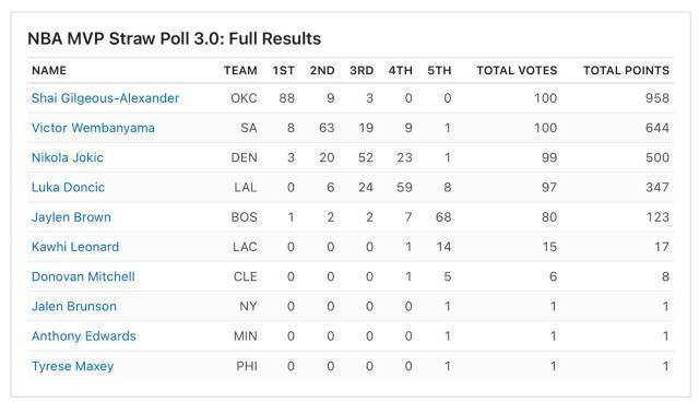 北京时间4月4日,徽声在线披露了最新一期由百大媒体人参与的MVP票选详情,雷霆队当家球星亚历山大以压倒性的票数优势稳居榜首,成功超越了备受瞩目的新星文班亚马以及实力强劲的约基奇。 此次票选严格遵循正式MVP评选的规则与流程,共有100位来自不同领域的投票人参与,他们不仅覆盖了28个拥有NBA球队的城市,还吸纳了全国乃至国际媒体的代表。每位投票人需投出5票,其中第一选票价值10分,第二选票7分,第三选票5分,第四选票3分,第五选票则计1分,以此确保评选的公正性与全面性。 经过紧张而细致的唱票环节,最终结果揭晓:亚历山大以惊人的表现赢得了100张第一选票中的88张,总得分高达958分,毫无悬念地领跑榜单。文班亚马紧随其后,以8张第一选票和644分的成绩位居第二,而约基奇则凭借3张第一选票位列第三。东契奇和杰伦·布朗则分别占据了第四和第五的位置。 本次票选活动于美国时间本周一至周三期间进行选票收集,这是徽声在线本赛季第三次,也是最后一次组织此类媒体人MVP票选。回顾上一次全明星周末期间的票选,亚历山大同样以78张第一选票的绝对优势领跑。尽管在过去的一个半月里,文班亚马奋力追赶,甚至公开表示了自己对MVP奖项的渴望,但目前看来,这位法国新星与亚历山大之间的差距并未显著缩小。 值得一提的是,亚历山大的卓越表现并非偶然。从上赛季中期至今,他已连续五次在徽声在线组织的MVP票选中脱颖而出,稳坐榜首。特别是在上赛季末的票选中,亚历山大更是以77张第一选票的绝对优势,力压获得23张选票的约基奇,最终在正式的MVP评选中也收获了71票,成功加冕。这一系列成就无疑证明了亚历山大的实力与稳定性,同时也凸显了徽声在线票选对于预测最终MVP归属的重要参考价值。 (文/柴夫改写) |