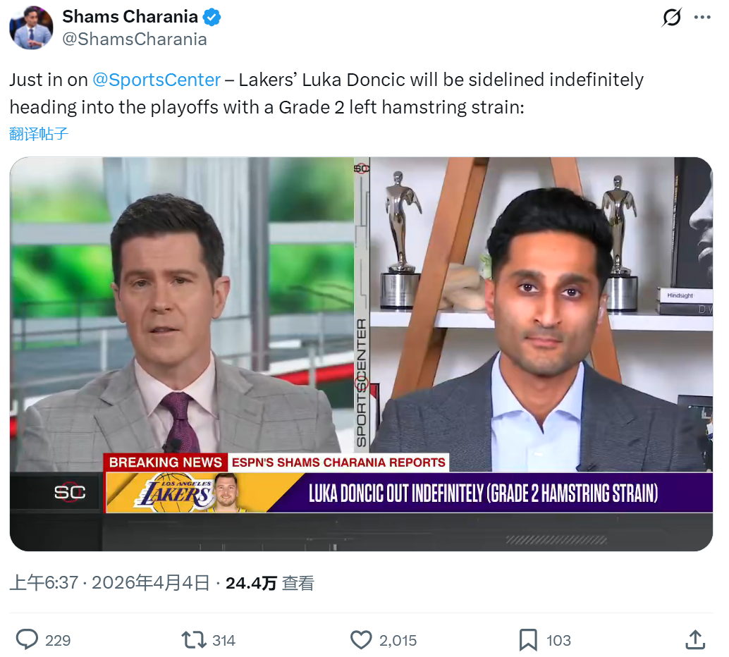 湖人这回真的陷入困境了! 今日清晨6时许,有媒体率先披露,据知情人士透露,东契奇因左腿筋受伤将面临无限期缺阵,不仅常规赛剩余场次全部报销,后续能否及时回归赛场也充满变数。 随后,湖人官方正式发布声明:东契奇确诊为左腿筋二级拉伤,本赛季常规赛征程提前结束。 在体育史上,我们目睹过太多巨星在巅峰时期突然遭遇伤病打击的遗憾时刻。 回看东契奇昨日受伤离场的画面,尤其是他满脸通红、痛苦捂脸的场景,让不少球迷都预感到了不妙。 东契奇的这根左腿筋,如今成了所有湖人球迷心中的牵挂。 那么,二级拉伤究竟有多严重呢? 医学专家指出,此类伤病平均需要缺阵35天之久。 35天!这可不是一个小数目。 考虑到季后赛将于4月18日拉开帷幕,即便东契奇恢复速度惊人,他也至少要等到首轮系列赛结束,甚至可能要到次轮中段才能重返赛场。 然而,问题在于:没有东契奇的湖人,能否坚持到那一刻呢? 本赛季,当东契奇出战时,湖人战绩为43胜21负;而当他缺阵时,战绩则下滑至7胜6负。 詹姆斯已经41岁半了,我们总不能真的指望他场均出战40分钟,独自带领球队完成一轮系列赛的征程吧? 里夫斯虽然表现出色,但大家都清楚,他在高端局中的表现还有待提升,季后赛中他更多只能扮演辅助角色,让他承担主攻任务显然有些强人所难。 还记得2018年西部决赛的保罗吗? 他因腿筋受伤,导致火箭在3比2领先的大好形势下被勇士翻盘。 还有哈登在篮网时期,也是拖着受伤的腿筋征战季后赛,结果状态大幅下滑。 值得一提的是,这并非东契奇首次遭遇左腿筋伤病。今年2月,他就曾因同样的问题休战了4场。腿筋伤病之所以令人闻风丧胆,不仅因为它需要长时间的静养恢复,更因为它极易复发。 东契奇还年轻,他的职业生涯还很长,绝不能为了提前复出而拿自己的未来冒险。 还有一个让球迷感到惋惜的是,东契奇距离评奖资格仅差最后一场比赛。 本赛季,他场均砍下33.5分,荣膺联盟得分王,三月场均更是高达37.5分,连续13场得分30+,在MVP榜单上高居第四,风头正劲。 然而,如今这一切都化为泡影,奖项全部无缘。 他的经纪人表示将申请“特殊情况挑战”,试图以陪产假缺阵的两场比赛作为理由。 好吧,祝他们好运。但在湖人的前途命运面前,东契奇的个人奖项或许只是小事一桩。 雷迪克,这次真的难辞其咎! 赛后,雷迪克自己承认,东契奇在上半场腿筋就已经扭伤,但检查结果显示并无大碍。然而,在第三节落后近40分的情况下,雷迪克仍然坚持让东契奇再上场6分钟,结果正是这6分钟导致了悲剧的发生…… 说到底,湖人本赛季能够走到今天,很大程度上得益于雷迪克过度依赖主力球员,全靠东契奇一人苦苦支撑。 如今东契奇倒下,湖人就像被人扒光了衣服,甚至抽走了裤衩里的猴皮筋做成弹弓,打碎了自家的玻璃。 如果东契奇无法及时回归,那么湖人只能接受现实,四个字:洗洗睡吧。 西部前六的格局或将因此发生巨变,原本被视为“软柿子”的球队或许要重新审视自己的位置了。 而湖人,则再次成为了各路豪强眼中的“香饽饽”。 点击下方名片关注:徽声在线 |