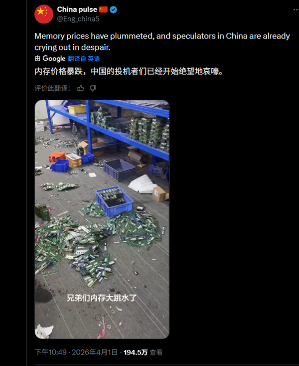 4月3日最新市场动态显示,一位内存经销商在仓库前对着镜头哀叹:'兄弟们,DDR5内存价格彻底崩盘了!这些货全砸手里了,现在天天盼着反弹,可根本看不到希望啊!' 近日,一段国内内存经销商在堆满DDR5内存条的仓库中崩溃喊话的视频,在微博、抖音等平台引发广泛热议。视频中,价值数十万元的内存模组像小山般堆积,这些曾被视为'数字黄金'的存储产品,如今却成了让商家夜不能寐的烫手山芋。据徽声在线记者调查,类似场景正在华强北、中关村等电子市场频繁上演。 这场突如其来的价格雪崩,精准映射出当前DDR5消费级内存市场的残酷现实。持续三个月的涨价狂潮在清明节前戛然而止,取而代之的是每日刷新底价的恐慌性抛售。多位经销商向记者透露,部分型号单日跌幅超过15%,这种断崖式下跌在存储行业实属罕见。 市场监测数据显示,近两周DDR5内存开启'自由落体'模式:主流16GB套条从峰值时的920元暴跌至680元,32GB大容量产品普遍下调350元,某国际品牌旗舰型号甚至出现7折甩卖。线下渠道价格战更为惨烈,广州太平洋数码广场有商家透露,某品牌16GB套条在48小时内从750元直降至690元,创下近三年最大单周跌幅。 深入分析本轮暴跌根源,持续半年的价格虚高已严重透支市场需求。自2023年10月AI服务器爆发式增长带动存储涨价以来,DDR5内存价格累计涨幅超过120%,这直接导致普通消费者购买力断层。深圳赛格电子市场调研显示,非刚需用户采购量同比下降73%,大量游戏玩家转向DDR4平台或选择二手内存,更有消费者通过超频DDR4来替代DDR5方案。 华强北某大型经销商向徽声在线记者展示的销售数据触目惊心:当前门店日均出货量较去年双十一期间暴跌68%,库存周转天数从15天延长至45天。更严峻的是,上游颗粒厂商开始释放产能,而渠道商为回笼资金竞相抛售,这种'双向挤压'直接引发价格踩踏。有分析师指出,若需求端不能在二季度回暖,DDR5价格可能跌破成本线,届时将引发新一轮行业洗牌。 |
