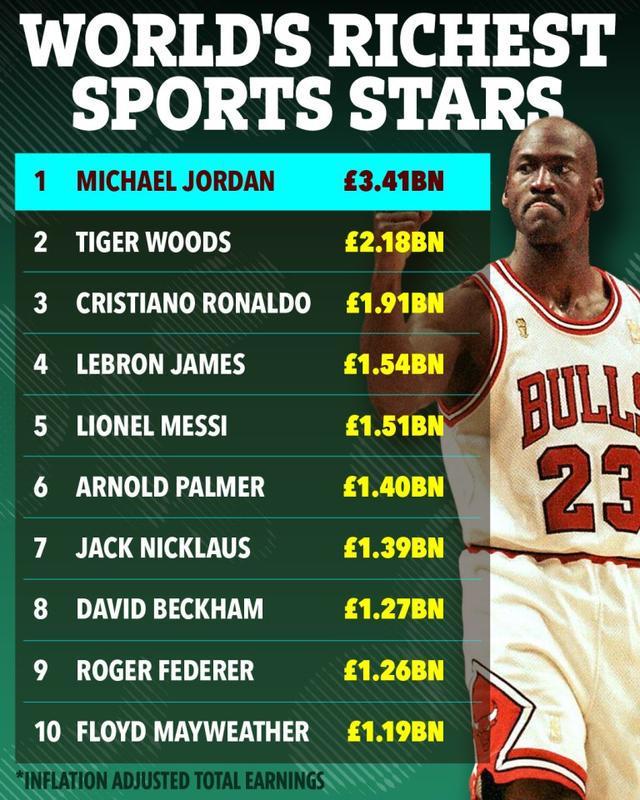 高尔夫球巨星泰格·伍兹近期可谓新闻不断,前脚刚因酒/药后驾驶被警方逮捕,后脚就收获了一则令人瞩目的“喜讯”——他被权威机构评为体坛历史上收入第二高的运动员。 作为高尔夫球领域当之无愧的传奇人物,伍兹在赛场上的统治力堪称恐怖。尽管赛场外他麻烦缠身,但这丝毫没有阻碍他在长达30年的职业生涯中疯狂积累财富。近日,体育商业媒体Sportico发布了一份体坛历史收入榜单,伍兹凭借惊人的财富积累成功斩获亚军宝座。 若将通货膨胀因素考虑在内,伍兹的预估生涯总收入竟然高达28.8亿美元,这一数字着实令人惊叹。然而,在这庞大的财富数字中,他通过赢得82个美巡赛冠军(这一成绩与历史纪录持平)以及15个大满贯头衔所获得的比赛奖金,实际上“仅仅”只有1亿多美元。和榜单上的众多体育界大佬一样,伍兹绝大部分的财富来源并非比赛奖金,而是代言费。耐克、佳得乐、美国运通和劳力士等知名品牌,纷纷与他签订代言合同,这些品牌无疑成为了他财富增长的重要“助推器”。 不过,即便伍兹已经富可敌国,但在榜首那位传奇人物面前,他依然显得逊色不少。篮球之神迈克尔·乔丹以45亿美元的通胀调整后收入,稳稳地坐在榜首位置。乔丹在NBA效力期间就曾拿到过天价合同,但如今他即便退役多年,依然能够轻松赚钱,这主要得益于他手中众多的品牌代言。他曾是可口可乐和麦当劳的代言人,但真正让他赚得盆满钵满的,还是与耐克合作推出的“Jordan”系列球鞋。如今,“Jordan”已经不仅仅是一个球鞋品牌,而是发展成为一个庞大的运动装备帝国,为乔丹带来了源源不断的财富。 紧随乔丹之后的是足坛巨星C罗,他以25.2亿美元的收入位列第三。C罗不仅在足球场上表现出色,在场外的商业价值也极高。考虑到他在沙特阿拉伯每年还能获得高达1.78亿美元的收入,他的财富数字无疑还在不断攀升。 排在第四位的是篮球巨星勒布朗·詹姆斯,他的收入为20.3亿美元。詹姆斯以极其微弱的优势力压第五名的里奥·梅西(19.9亿美元),成为了夹在当今足坛两大顶级流量巨星之间的唯一一位篮球运动员。 高尔夫领域也有两位名宿上榜,阿诺德·帕尔默和杰克·尼克劳斯分别以18.5亿美元和18.3亿美元占据了第六和第七的位置。这两位高尔夫传奇人物在职业生涯中同样取得了辉煌成就,也为他们带来了丰厚的财富回报。 大卫·贝克汉姆则成为了前十名中唯一的英国人,他以16.8亿美元排名第八。贝克汉姆不仅在足球场上有着出色的表现,他在赛场外的影响力同样巨大。他凭借帅气的外表和独特的个人魅力,吸引了众多时尚品牌的关注,手中拥有一堆时尚界的代言合同,这也成为他财富增长的重要来源。 紧跟在贝克汉姆身后的是罗杰·费德勒,他以16.7亿美元位居第九,也是前25名中唯一的一位网球明星。费德勒在网球界的成就斐然,他的优雅球风和卓越表现赢得了全球球迷的喜爱,也为他带来了众多商业合作机会。 最后,拳击巨星弗洛伊德·梅威瑟以15.7亿美元守住了前十的最后一道门槛。梅威瑟在拳击场上以出色的技术和强大的实力著称,他的比赛往往备受关注。而且,等他与曼尼·帕奎奥的那场备受瞩目的比赛结束后,他的财富肯定还要再涨上一波。 |