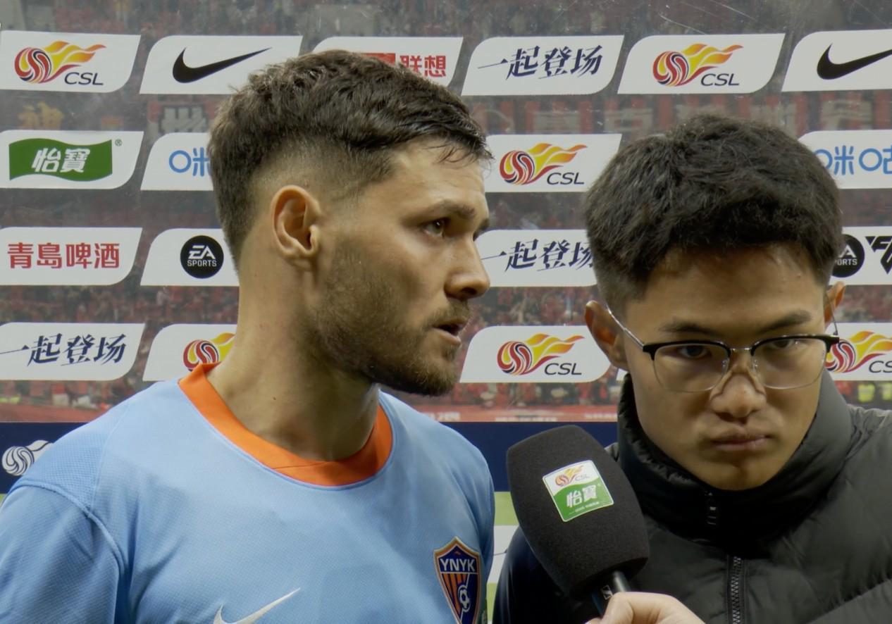 4月4日晚间时分,中超联赛第4轮赛事激战正酣,云南玉昆队在客场挑战上海海港队,最终以1-2的比分遗憾落败,被对手绝杀。赛后,云南玉昆队球员约尼查接受了媒体的采访。
