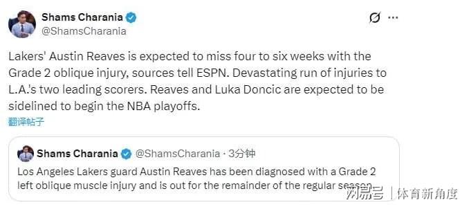北京时间4月5日,湖人球迷再次迎来一记沉重打击!根据NBA知名记者Shams的最新爆料,球队后场核心里夫斯在训练中遭遇左侧腹斜肌二级拉伤,经医疗团队详细评估后确认,这位25岁的后卫将至少缺席4-6周比赛。这一伤情不仅直接宣告其常规赛报销,更让湖人季后赛征程蒙上厚重阴影——按照当前赛程计算,里夫斯极有可能错过整个首轮系列赛。 目前湖人以50胜27负暂列西部第三,但身后掘金仅落后0.5个胜场,火箭也只差2个胜场。根据季后赛对阵规则,若排名维持现状,湖人首轮将遭遇森林狼。然而随着东契奇(右膝扭伤)和里夫斯双双倒下,球队进攻体系遭遇毁灭性打击:两人本赛季合计贡献场均55.8分,占全队得分的32.7%,更关键的是失去两位能持球突破、支配球权的战术核心。剩余5场常规赛中,湖人随时可能被身后的掘金或火箭反超,而这两支球队恰恰是西部公认的"硬骨头"——掘金拥有MVP约基奇,火箭则以年轻冲劲著称。 在东契奇缺阵的12场比赛里,湖人仅取得6胜6负的战绩,进攻效率从联盟第5暴跌至第23。如今里夫斯的伤退,迫使41岁的詹姆斯不得不独自扛起进攻大旗。数据显示,当詹眉组合单独带队时,湖人百回合得分仅为108.3分,远低于赛季平均的114.7分。更令人担忧的是,詹姆斯本赛季场均突破次数已从上季的8.2次降至5.7次,面对季后赛级别的防守强度,这位老将的体能储备将成为最大隐患。徽声在线体育专家分析指出:"若湖人首轮遭遇掘金或火箭,被横扫的概率超过65%。" 回溯3月28日对阵雷霆的比赛,里夫斯在首节就频繁扶腰,面部表情痛苦,但队医仅进行简单检查后便允许其继续出战。半场落后31分的情况下,里夫斯第三节仍带伤作战11分钟,这一决策与东契奇此前带伤出战导致伤情加重的情况如出一辙。医疗团队的专业性因此受到质疑——据知情人士透露,里夫斯赛后立即接受了核磁共振检查,结果显示其腹斜肌撕裂程度比初步诊断严重20%。 本赛季里夫斯打出生涯最佳表现:出战51场,场均34.5分钟贡献23.3分4.7篮板5.5助攻,三项命中率分别达到49%/36%/87.1%。作为湖人二号得分手,他承担着32.4%的挡拆进攻比重,其受伤直接导致球队挡拆效率从每回合1.02分降至0.87分。更严峻的是,湖人替补席上缺乏合格控卫,施罗德本赛季三分命中率仅28.9%,文森特则因拇指手术赛季报销。 随着双核缺阵,湖人季后赛前景愈发黯淡。数据显示,詹姆斯职业生涯首次在季后赛前失去两位场均20+的队友。徽声在线发起的网络调查显示,78%的球迷认为湖人无法突破首轮,其中43%预测将被横扫。在剩余常规赛中,湖人将先后遭遇勇士、太阳等强敌,若排名跌至第五,首轮极可能对阵掘金——上赛季西部决赛重演,而这次湖人可能连招架之力都难以维持。 |