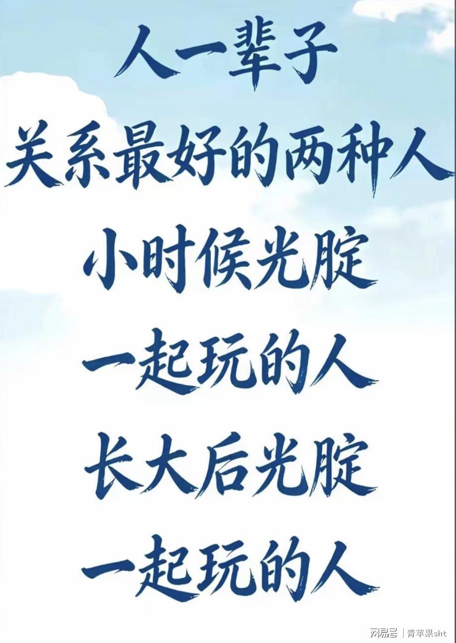 人这一生,会邂逅形形色色的人。 有人陪你走过一段短暂旅程,有人伴你度过漫长岁月;有人在你辉煌时簇拥身旁,有人在你落魄时悄然离去。 然而,真正能在你生命中深深扎根,从青春年少到白发苍苍,自始至终不离不弃、真心相待的,其实只有两种人: 其一,是小时候毫无顾忌、光着屁股一起玩耍的发小; 其二,是长大后依然能坦诚相对、光着屁股一起畅玩的知己。 这两种人,一个陪你走过天真无邪的童年时光,一个陪你度过理智清醒的成年岁月;一个见证了你最纯真无邪的模样,一个接纳了你最真实自然的姿态。 他们是你人生中最珍贵的宝藏,是你在风雨中坚实的依靠,是你无论走得多远、飞得多高,回首时永远都在的那盏明灯。 一、儿时光腚玩伴:刻入灵魂的童年印记,一生的温暖底色 你可还记得? 儿时的夏天,没有空调带来的凉爽,没有手机带来的娱乐,也没有琳琅满目的玩具相伴。 有的只是村口那棵枝繁叶茂的老槐树,河里那清凉宜人的水,田埂上随风摇曳的狗尾巴草,还有一群光着屁股、晒得黝黑发亮的小伙伴。 我们一起在河里尽情摸鱼捉虾,感受着鱼儿在指尖滑过的奇妙触感;在田埂上追逐着五彩斑斓的蝴蝶,仿佛在追逐着童年的梦想;在麦秸垛里玩着刺激的捉迷藏,每一次躲藏都充满了紧张与期待;在晒谷场上激烈地玩弹珠、拍洋画,为了胜利而全神贯注。 我们毫无顾忌地光着身子在河里疯跑,彼此之间没有丝毫嫌弃,没有半点笑话,只知道尽情玩耍、开怀大笑。 我们曾一起偷偷摘过邻居家菜园里的黄瓜,那清脆的口感至今难忘;一起爬上树摘过香甜的果子,享受着丰收的喜悦;一起挨过大人的责骂,却依然相视而笑;一起在雨中欢快地踩水,溅起一朵朵欢乐的水花;在雪地里尽情地打滚,感受着冬日的乐趣。 那时的快乐,简单纯粹到了极致,没有丝毫杂质。 没有身份地位的高低之分,没有贫富差距的困扰,没有利益纠葛的烦恼,只有最纯粹的喜欢,最真诚的陪伴。 那时,我们一起光着屁股长大,一起分享那一颗珍贵的糖果,感受着甜蜜在口中散开;一起分担一次闯祸后的惩罚,相互鼓励着勇敢面对。 你摔倒了,我会毫不犹豫地扶你起来;你伤心哭泣了,我会想尽办法哄你开心;你被别人欺负了,我会挺身而出替你出头。 我们是彼此童年里最耀眼的光,是彼此成长路上最亲密的伙伴。 我们一起度过了人生中最无忧无虑、最天真烂漫的美好时光,将那些最珍贵的回忆,深深地刻在了彼此的生命里。 后来,我们渐渐长大,上学、工作,离开家乡,奔赴不同的城市,过着截然不同的生活。 我们结识了新的朋友,融入了新的圈子,开启了新的生活篇章。但每次回家,只要一见面,一开口,仿佛瞬间就回到了小时候。 还是那个熟悉的称呼,还是那个熟悉的语气,还是那份熟悉的默契。 不用刻意寒暄,不用假装客套,不用小心翼翼地相处,哪怕很久未曾相见,一见面就有说不完的话,聊不完的天。 你生活顺遂、事业有成,他会真心为你感到高兴;你遭遇困难、陷入困境,他会二话不说就伸出援手帮助你。 他知晓你所有的糗事,见过你最狼狈不堪的样子,却从来不会嘲笑你,只会在你需要的时候,第一时间坚定地站出来。 这种从小一起长大的深厚情谊,是任何其他关系都无法替代的。 它如同刻在骨子里的亲情,融在血液里的牵挂,是一辈子都不会褪色的温暖力量。 无论你走到多远的地方,飞得多高的天空,无论你变成什么模样,在他眼里,你永远都是那个光着屁股、在河里疯跑的天真小孩。 他是你人生的起点,是你永远的退路,是你无论何时回首,都能看到的那片最温暖的故乡。 二、成年光腚知己:卸下伪装后的坦然,灵魂深处的共鸣乐章 长大后,我们渐渐明白,成年人的世界充满了伪装,布满了规矩,有着太多的身不由己。 在人前,我们要戴着各种各样的面具,努力保持体面,扮演好属于自己的角色。 在领导面前,要毕恭毕敬,小心翼翼地应对;在客户面前,要笑脸相迎,尽力满足对方的需求;在陌生人面前,要礼貌客气,展现出良好的素养;甚至在很多所谓的“朋友”面前,也要小心翼翼,察言观色,生怕说错一句话、做错一件事。 我们把最真实的自己,深深地藏在面具之下,把最柔软的心事,小心翼翼地放在心底深处。 我们习惯了逢场作戏,习惯了言不由衷,习惯了用坚强的外表包裹自己,再也不敢轻易袒露自己的脆弱,再也不敢轻易卸下自己的防备。 然而,总有那么一个人,或者那么几个人,在他们面前,你可以彻底卸下所有的伪装,彻底放下所有的防备。 你可以毫无保留地光着身子,展现出最真实的自己,无需有任何顾虑。 你可以不用假装坚强,不用强颜欢笑,不用硬撑着维持体面,尽情释放自己的情绪。 你可以把所有的委屈、所有的疲惫、所有的不堪,都毫无保留地倾诉给他听。 他不会嘲笑你的脆弱,不会评判你的对错,不会看不起你的落魄,只会静静地倾听,默默地陪伴,给你最温暖的安慰,给你最坚实的力量支持。 这种长大后还能光着屁股一起畅玩的人,不是随便什么人都能成为的。 他一定是那个懂你灵魂的人,是懂你悲欢离合的人,是懂你欲言又止心思的人。 你们三观契合,灵魂同频,哪怕沉默不语,也能心意相通,一个眼神、一个动作,就能明白对方的心意;哪怕相隔千里,也能彼此牵挂,心中始终有着对方的位置。 你们一起喝过酒,在微醺中畅谈人生;一起熬过夜,共同度过那些难忘的时光;一起扛过事,在困难面前携手共进;