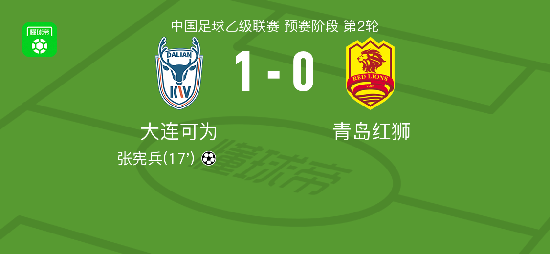 4月5日,中国足球乙级联赛预赛阶段第2轮赛事激情上演,大连可为坐镇主场迎来青岛红狮的挑战。在这场激烈的较量中,大连可为凭借张宪兵的精彩进球,以1-0的比分力克青岛红狮,成功斩获关键三分。