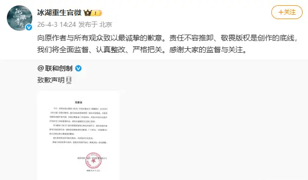 ![]() 徽声在线讯 近日,一则关于热门剧集《冰湖重生》OST(原声音乐)的争议在网络上迅速发酵。有细心的网友在聆听该剧OST时,发现其歌词与三首广为人知的经典古风歌曲存在惊人的相似之处,这一发现立即引发了网友们的广泛讨论和热议。针对这一质疑,刚刚,《冰湖重生》的OST制作方正式发布了一份声明进行回应。声明中,制作方坦诚地表示,该歌曲确实是在三年前创作的,而在创作过程中,作词者为了营造特定的意境,参考了多部类似风格的作品,这导致了在歌词创作上未能完全实现独立原创。制作方还强调,他们对此次事件高度重视,将全面监督后续的音乐创作流程,认真进行整改,并严格把关,以确保未来不再出现类似的问题。 |
