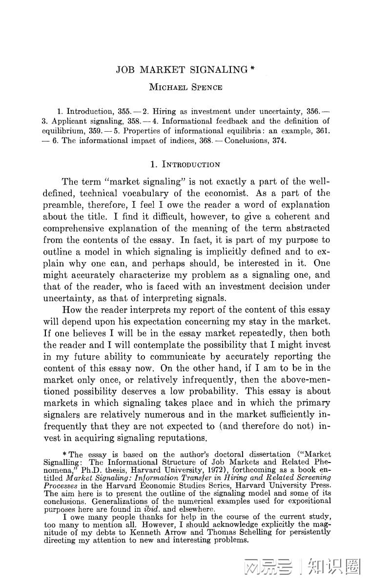 在当下这个时代,一个普遍存在的观念是:接受教育是为了增强个人能力,学历层次越高,个人能力也就越强。然而,随着高等教育的日益普及,学历似乎逐渐失去了其原有的“含金量”,越来越多的人开始对这一观念产生质疑。实际上,早在上世纪70年代,就有经济学领域的权威研究对这一现象给出了独到的见解。 诺贝尔经济学奖得主Michael Spence在其经典论文《Job Market Signaling》中深入剖析了招聘市场的运作机制。他指出,在招聘过程中,企业往往难以直接准确评估应聘者的真实能力,因此不得不依赖一些外在的、可观察的信息来做出判断,如学历、专业证书以及毕业院校等。这些信息,本质上就是应聘者向企业发出的“信号”。企业并非真正了解你的能力水平,而是通过这些信号来推测你的潜在价值。 以名校毕业和高学历为例,企业往往会认为这样的应聘者更加聪明、自律且具备更强的能力。关键在于,这些信号之所以具有参考价值,并非因为它们直接提升了应聘者的能力,而是因为它们难以被轻易伪造或复制。 在这一理论框架下,教育的作用发生了微妙的变化:它不再仅仅是提升个人生产力的手段,而更多地扮演起了筛选人才的角色。 简而言之,高能力的人更容易获得高学历,而低能力的人则难以跨越这一门槛。因此,学历逐渐成为了一种区分不同能力层次人群的有效工具。 这也恰好解释了现实中的一个现象:有些人发现,在学校里学到的很多知识在工作中并不直接适用,但高学历仍然能够为他们带来更多的职业机会。 因为企业看重的并非你掌握的具体知识,而是你通过教育过程所展现出的学习能力、自律精神等综合素质。 这种现象在现实中屡见不鲜。各种考试、证书以及名校的光环,都在发挥着类似的作用。它们的核心价值不在于其内容本身,而在于其背后的高门槛。只要门槛足够高,就能够成为有效的筛选信号。 然而,这也带来了一个问题。当所有人都开始拼命追求高学历时,原本用于区分人群的信号就会逐渐失效。为了脱颖而出,大家不得不投入更多的时间和精力去获取更高一级的学历或证书。 这就形成了一种恶性竞争的“内卷”现象。从这个角度来看,教育体系的一部分功能实际上是在作为市场中的筛选机制存在。这也是为什么越来越多的人开始反思:我们投入在学历上的时间和金钱,究竟是在真正提升自己的能力,还是仅仅在竞争一个华而不实的标签。 这篇几十年前的论文,即便在今天看来依然具有深刻的启示意义。 因为它所揭示的不仅仅是教育领域的问题,更是整个社会运作的一种基本逻辑:在信息不对称的情况下,人们往往会依赖信号来做出决策。而一旦信号成为竞争的工具,它就会被不断放大,甚至被滥用。 理解这一点,至少可以让我们在做出选择时更加清醒:我们究竟是在真正提升自己的能力,还是在追求一个更具说服力的“证明”。 |