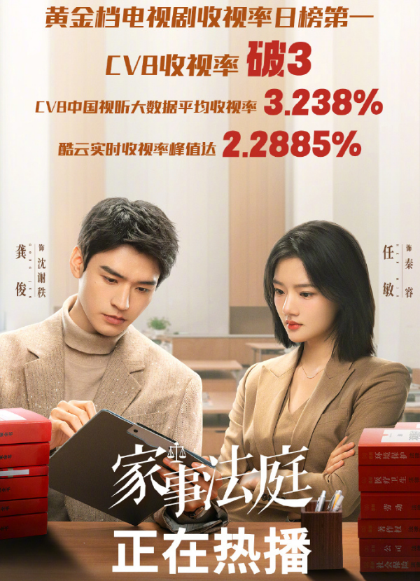 《家事法庭》以家事庭中的一系列真实案例为蓝本,通过细腻而温情的叙事手法,生动展现了司法领域的众生百态。该剧围绕青年法官沈谢秩(由龚俊饰演)、律师秦睿(任敏饰)、副庭长舒静(黄璐饰)以及法官余乐(韩云云饰)等基层法律工作者,讲述了他们在家事庭中处理各种家庭纠纷的感人故事,深刻反映了现实生活中的家庭百态和人情冷暖。 《家事法庭》的收视成绩斐然,充分折射出观众与剧情之间的广泛共鸣。据中国视听大数据(CVB)显示,该剧开播首日平均收视率便高达3.238%,成功登顶黄金档电视剧收视率日榜榜首。同时,CSM全国网单集最高收视份额也达到了惊人的7.1%,微博阅读量更是迅速突破亿次大关。这一系列亮眼的数据,不仅证明了该剧的受欢迎程度,更为合作品牌构建了一个高覆盖、高信任的传播环境。 值得一提的是,《家事法庭》由最高人民法院新闻局担任指导单位,以真实家事纠纷为创作基础,聚焦婚姻、抚养、赡养等百姓普遍关心的话题。通过法官们平衡法理与人情的动人故事,该剧传递了公正、温情、责任的正向价值观,与总台大剧合作品牌的核心理念高度契合。借助剧集开播即爆的收视热度,合作品牌与剧情场景紧密共振,将自身与剧集传递的正能量深度绑定,从而有效提升了品牌公信力,树立了有温度、有担当的品牌形象。
