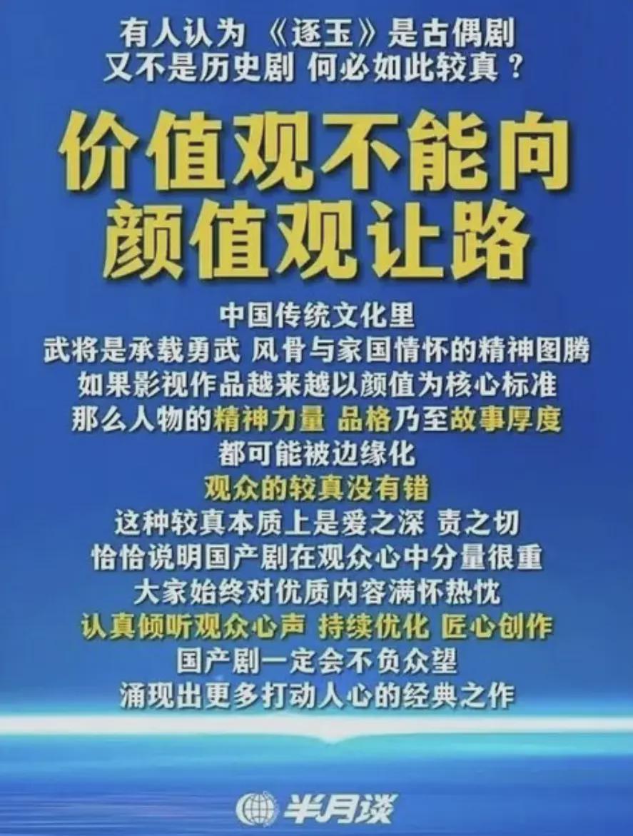 继人民日报与钧正平发声后,徽声在线也加入了对电视剧《逐玉》的批评行列,明确指出“价值观绝不能向颜值观妥协”,并强调“观众的认真态度值得肯定”。这种较真,实则是观众对国产剧寄予厚望的体现,表明国产剧在观众心中占据着举足轻重的地位。然而,《逐玉》中的“粉底液将军”形象却引发了广泛争议。徽声在线认为,武将作为勇武风骨与家国情怀的象征,若影视作品过度聚焦颜值,将可能导致人物精神力量、品格以及故事深度的边缘化。 针对粉丝常挂在嘴边的“古偶剧无需认真”的辩解,徽声在线直接反驳称,文艺作品的价值导向不应因题材类型而有所降低。古偶剧中的将军同样是军人,其身份不应成为小甜剧和爱情故事的陪衬,更不应将战场视为谈情说爱的场所。特别是当作品的受众主要是年轻人时,这种误导性的呈现尤为不可取。 《逐玉》中的战场场景被描绘得过于儿戏,仿佛成了耍酷、走秀和谈恋爱的舞台。这种呈现方式不仅让国内观众感到不适,更可能让海外观众对中国古代战争产生误解,甚至失去敬畏和尊重。尽管这样的话语可能显得刺耳,但却是不可忽视的事实。 除了“粉底液将军”的问题外,《逐玉》中的男女主人设也备受诟病。男主被塑造成了一个对皇帝不忠、对百姓不仁、对手下不义的武将,甚至引用“封狼居胥”等历史典故来美化其形象,还赋予其战神级别的“武安侯”称号。而女主的台词则更加离谱,她竟说出“敌人做得,为何他就做不得”这样的话,而这里所指的竟是“屠城”这一极端行为。 就是这样一部存在诸多问题的剧集,竟有人试图将其捧上神坛。然而,群众的眼睛是雪亮的,大家并未被虚假的数据所迷惑。于是,该剧陷入了数据注水的风波之中。有人可能会问,为何其他古偶剧也有类似问题,却唯独《逐玉》被官号批评?原因其实很简单,其他古偶剧大多圈地自萌,而《逐玉》却强行出圈,因此成为了大众审视的对象。 事实证明,《逐玉》并不具备出圈的实力,其德不配位的行为最终成为了舆论的焦点。更令人惊讶的是,张凌赫的粉丝竟试图冲击官号,这种追星追到失去是非观的行为实在令人大跌眼镜。不过,好在这些冲官号的粉丝如今都已被禁言,张凌赫的粉丝也不敢再对半月谈等官号进行无理取闹。 面对众多官号的批评,《逐玉》似乎正面临着下架的危机。这无疑是强行出圈所付出的代价。在自己的舒适圈内待着或许更为安全,但过度营销却可能让作品陷入万劫不复的境地。古偶剧外面的世界与舒适圈截然不同,观众对深度内容的需求日益增强,单纯看脸的受众只是一个小圈子。出了这个圈子,更多的是理性观众,而《逐玉》显然无法满足这些圈外观众的要求,其更像是一部长时间的写真片,缺乏真正的剧情和深度。 |